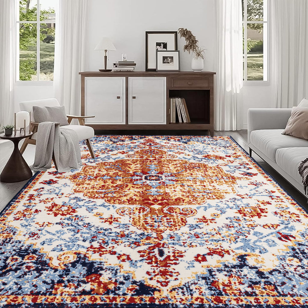 - Our washable rugs are made with ultra-fine, ultra-soft faux cashmere fibers. It will not shed fibers or be inhaled. Exquisite vintage design suitable for a variety of decoration styles. Our machine washable area rugs can bring a classic and ideal color to any place.