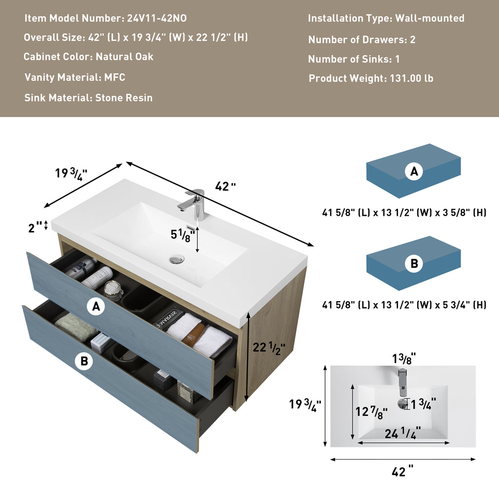 Floating Bathroom Vanity with Sink (24V11-42NO)