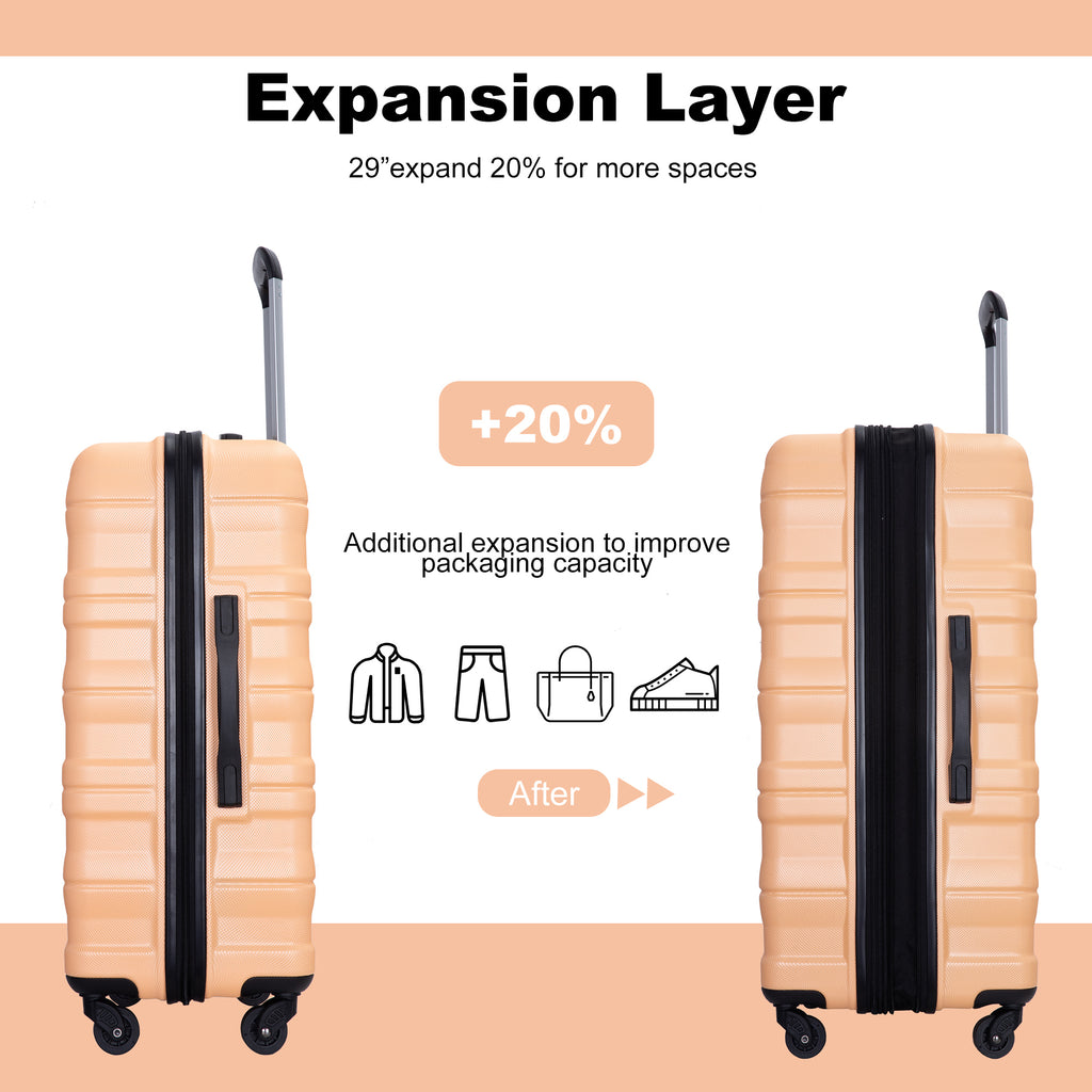 - Top quality luggage sets, PC material for hardshell, which makes the luggage more durable, lighter and impact-resistant. 21in is best for carry on, 29in expands 20% for more spaces.