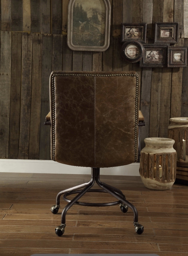 - This executive office chair exudes vintage sophistication with its luxurious Whiskey Top Grain Leather upholstery.