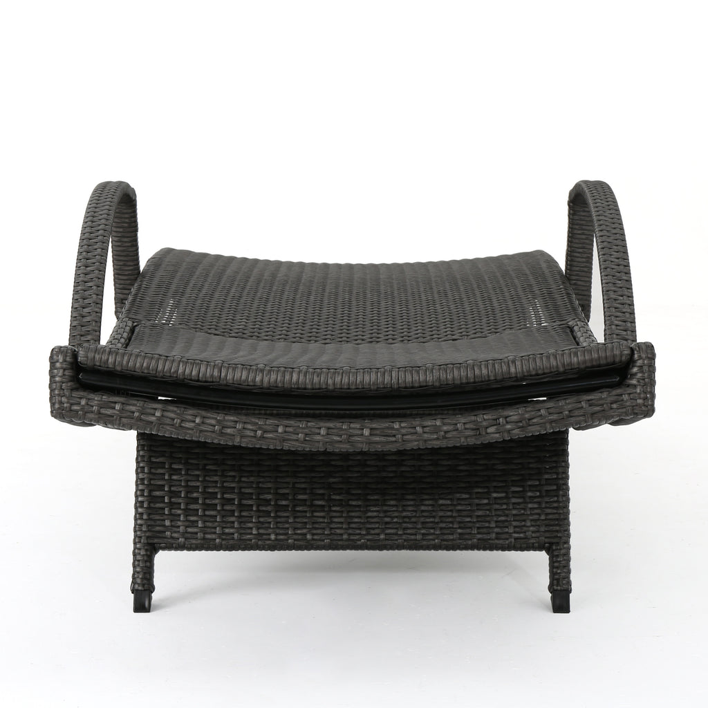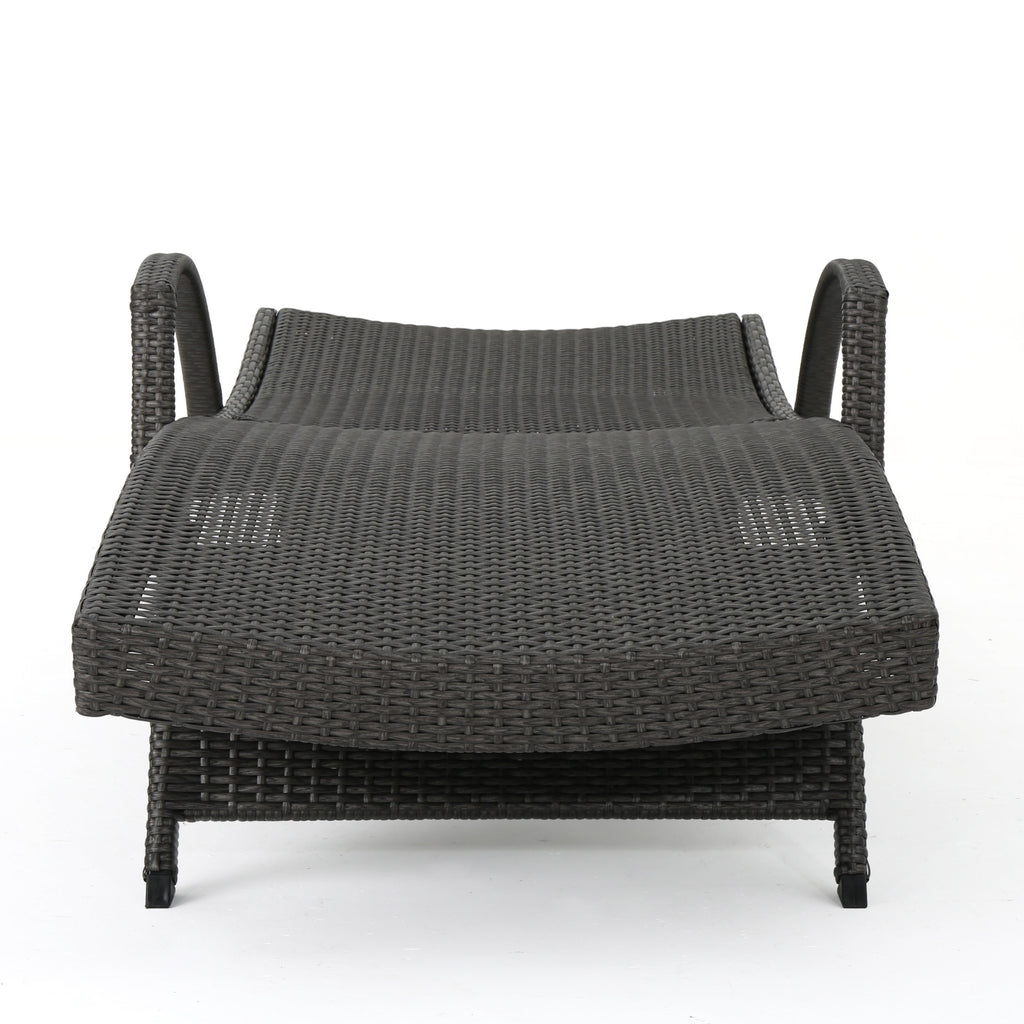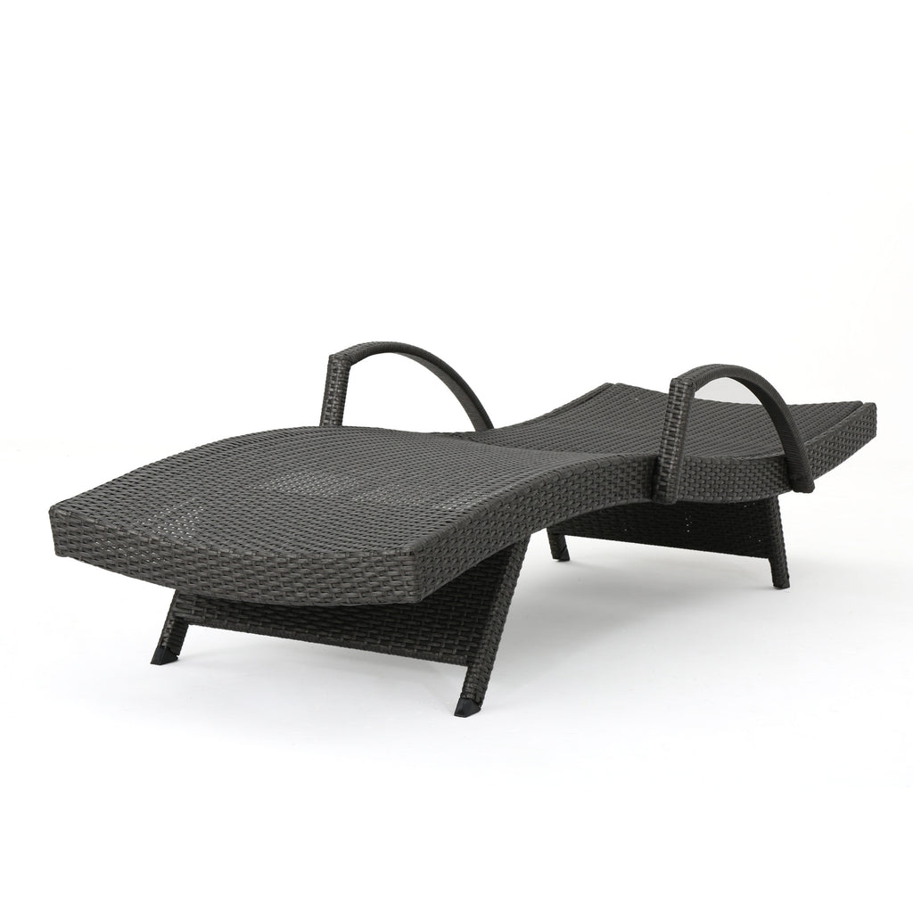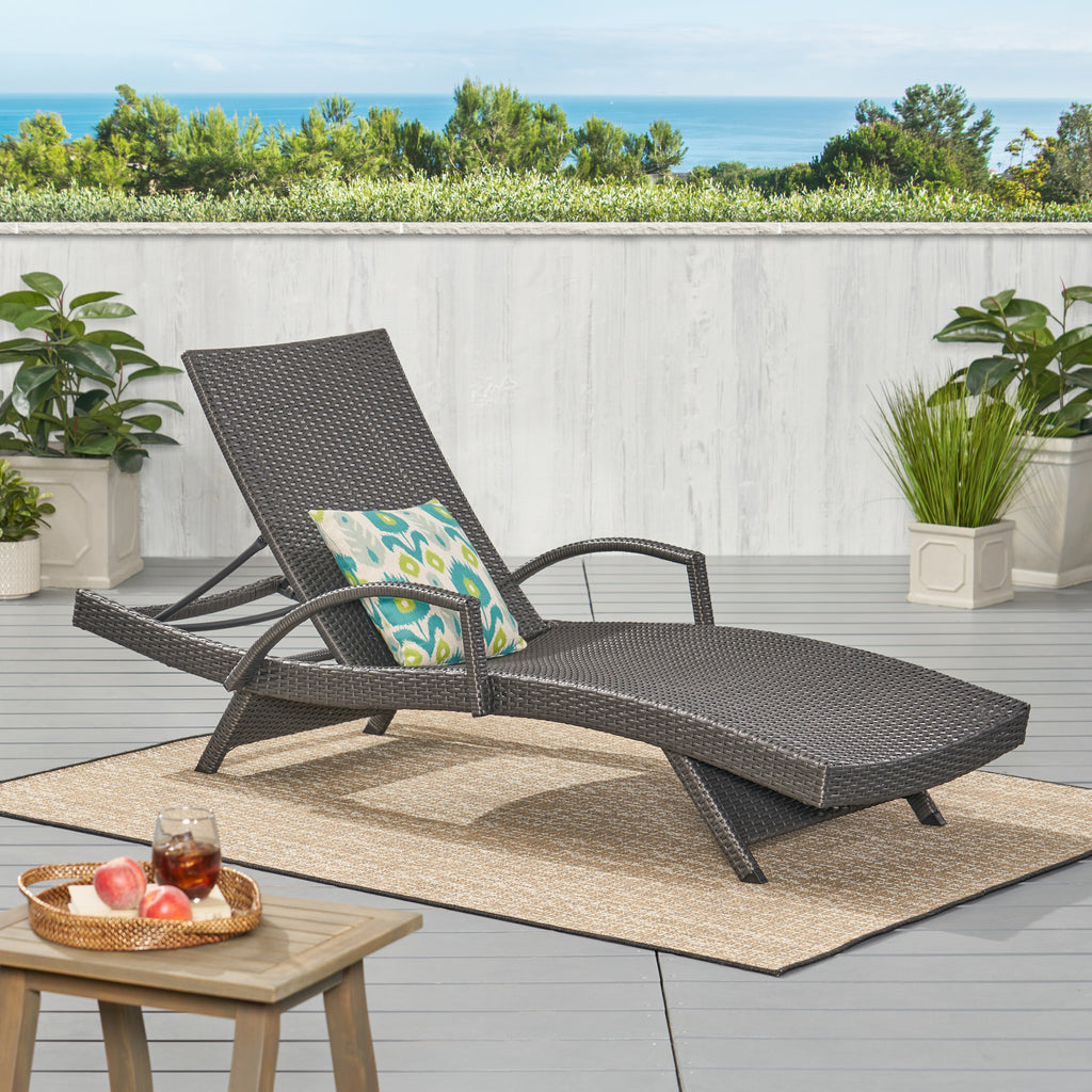 - Add some stylish comfort to your patio decor with this wicker lounge now with arm rests. It is weather resistant and with an adjustable back and folding legs for easy stacking.