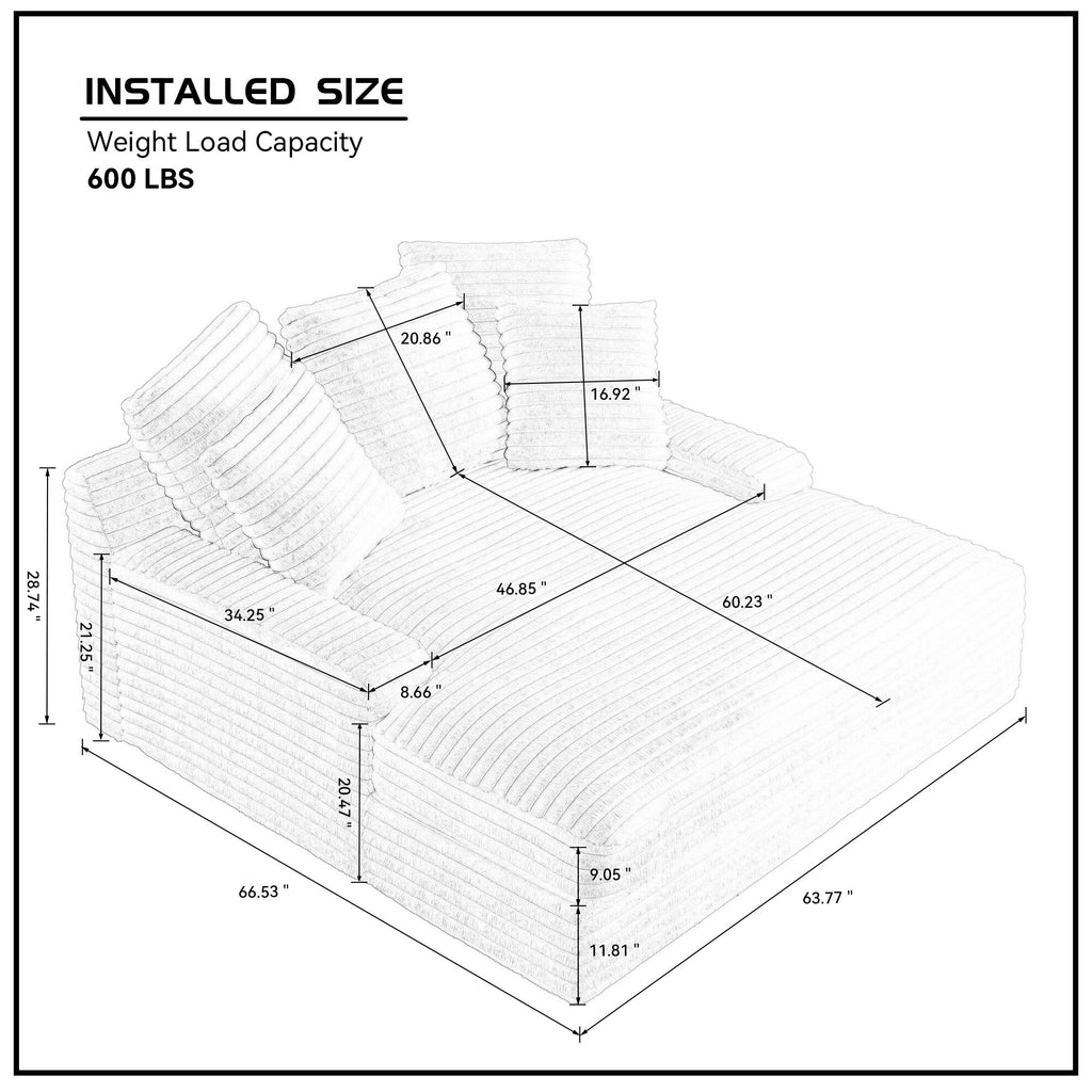 Double Sleeper Sofa, Comfortable Cloud Couch Soft Fluffy Corduroy Upholstery with Square Armrests
