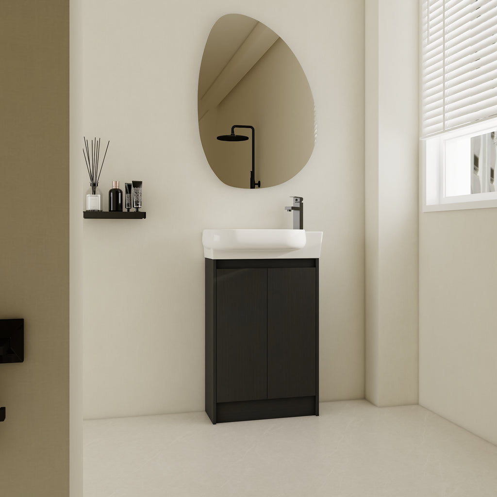 Vanity base is made of high quality 'Eco-Friendly' plywood that surface material used 'Scratch & Water-Resistant' melamine, which is designed to not only withstand threats of moisture and humidity but also easy to clean and maintain.