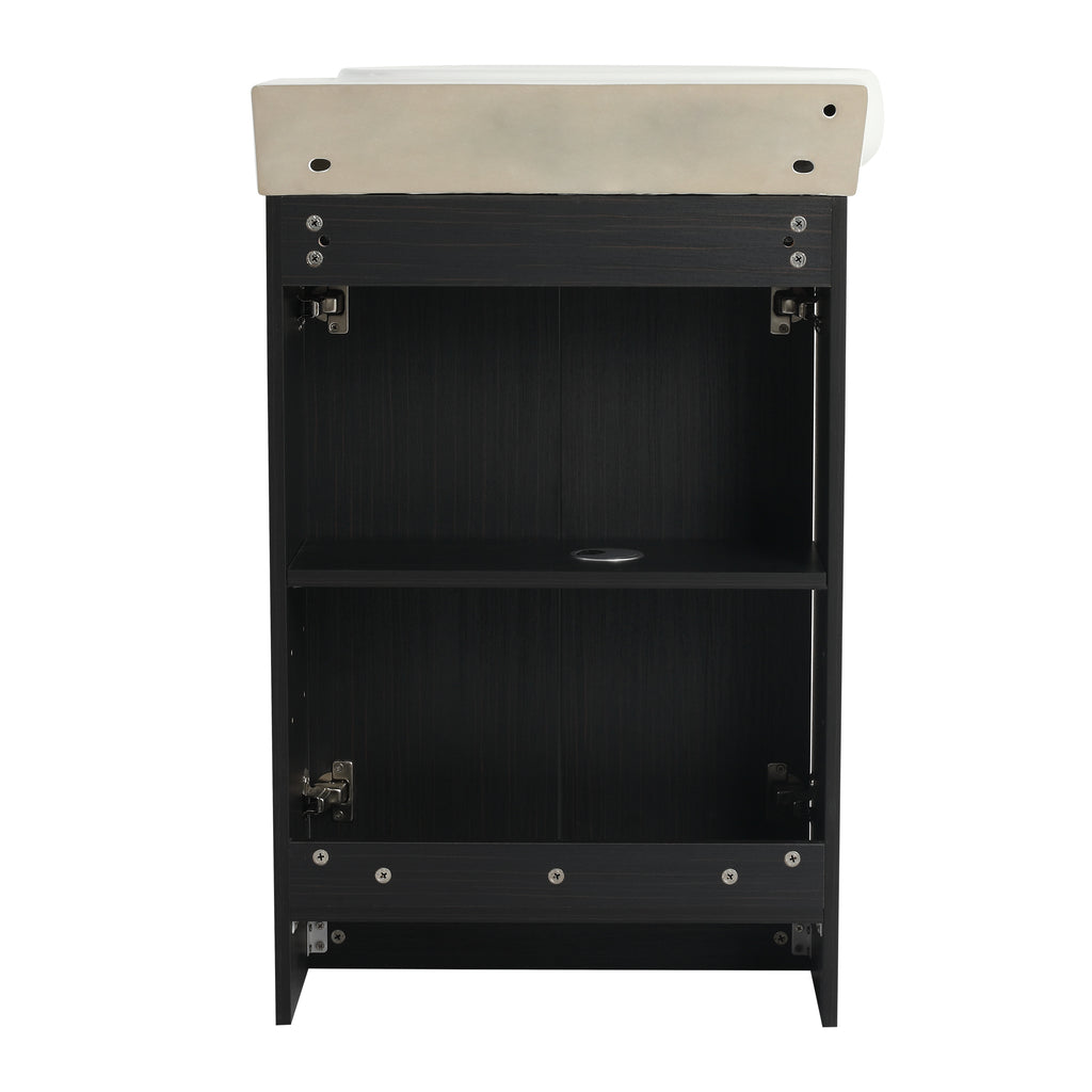 The bathroom cabinet and basin integral design make the product more concise and easy. The bathroom cabinet has its own adjustable shelves inside, providing a lot of extra space for the bathroom.