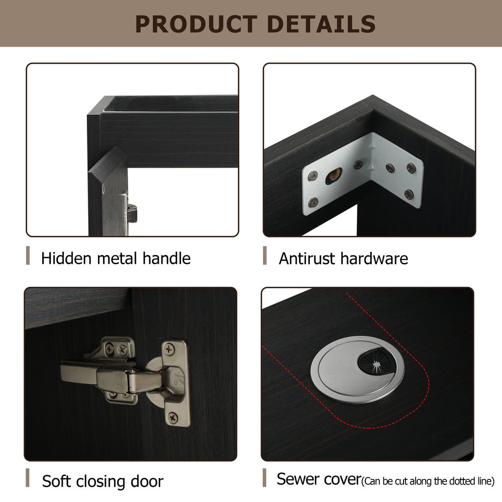 - Vanity color: Black Chestnut. (Note: Not pure black, there are brown lines on the surface.)