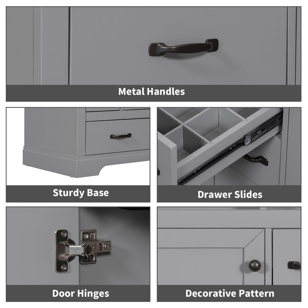- Two Packages & Assembly: This bathroom vanity needs assembly. All the hardware(screws, metal door hinges and handles, drawer slides, anti-toppling device etc.) and instruction manual are provided. You can install it according to the instruction easily.