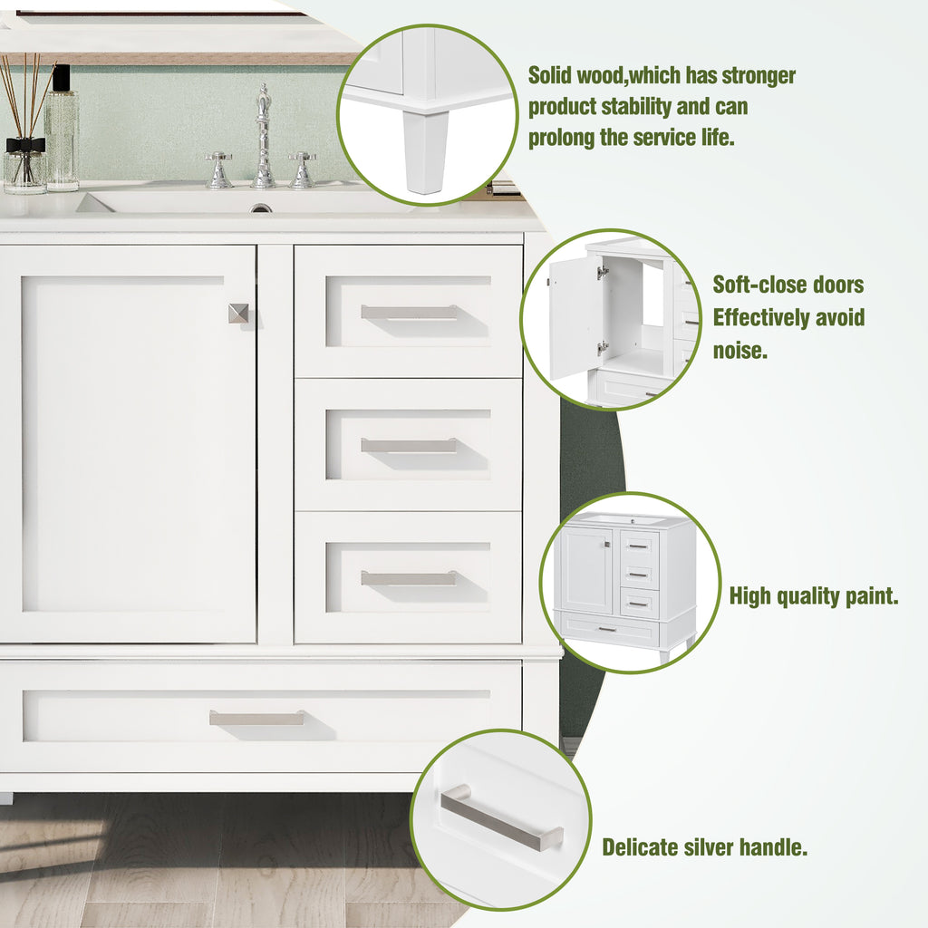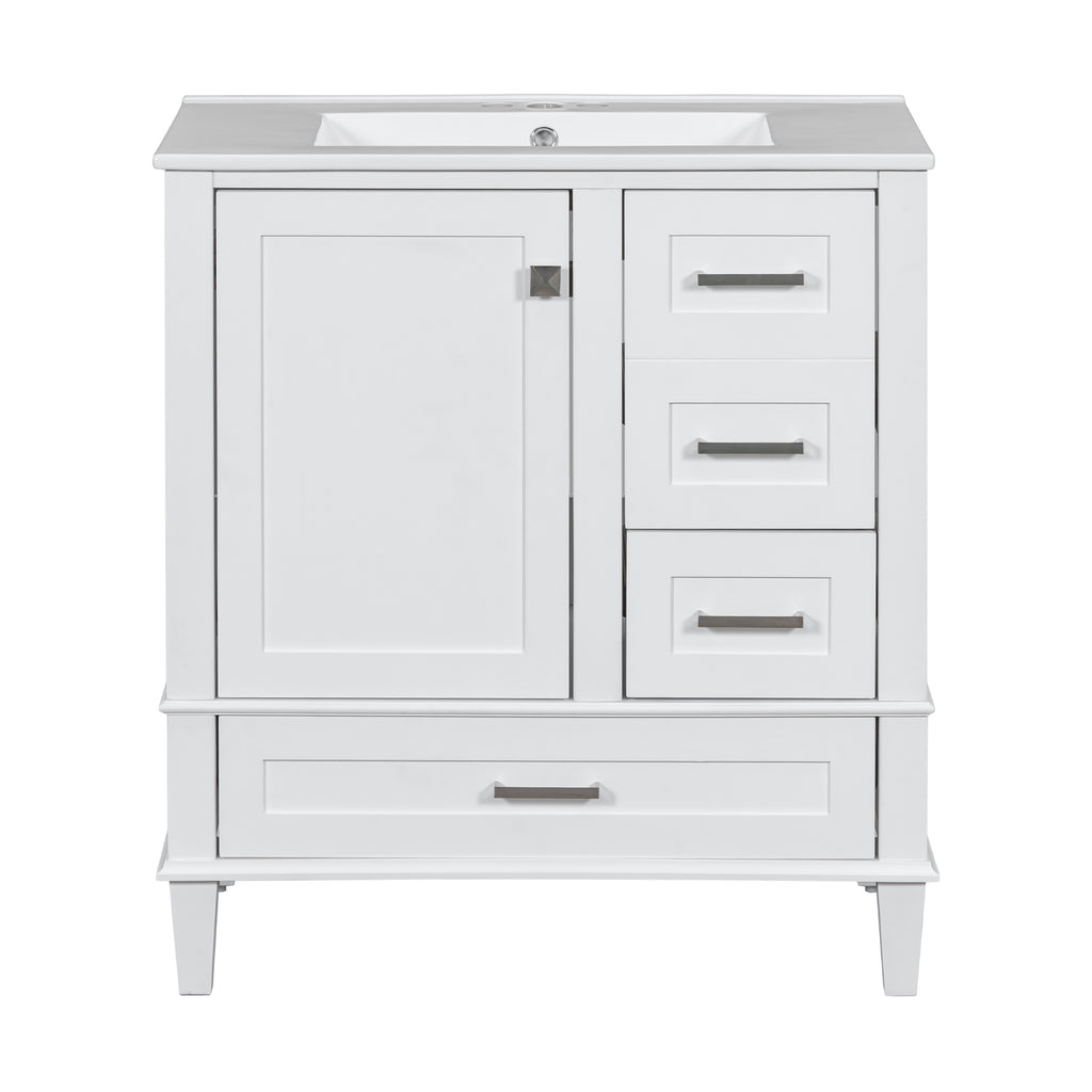 - [Keep Your Bathroom Organized]Equipped with a 30' sink, this bathroom vanity provides ample storage space, featuring 1 cabinet and 3 drawers of different depths and widths, perfect for neatly organizing various bathroom essentials, keeping your bathroom tidy and clutter-free.