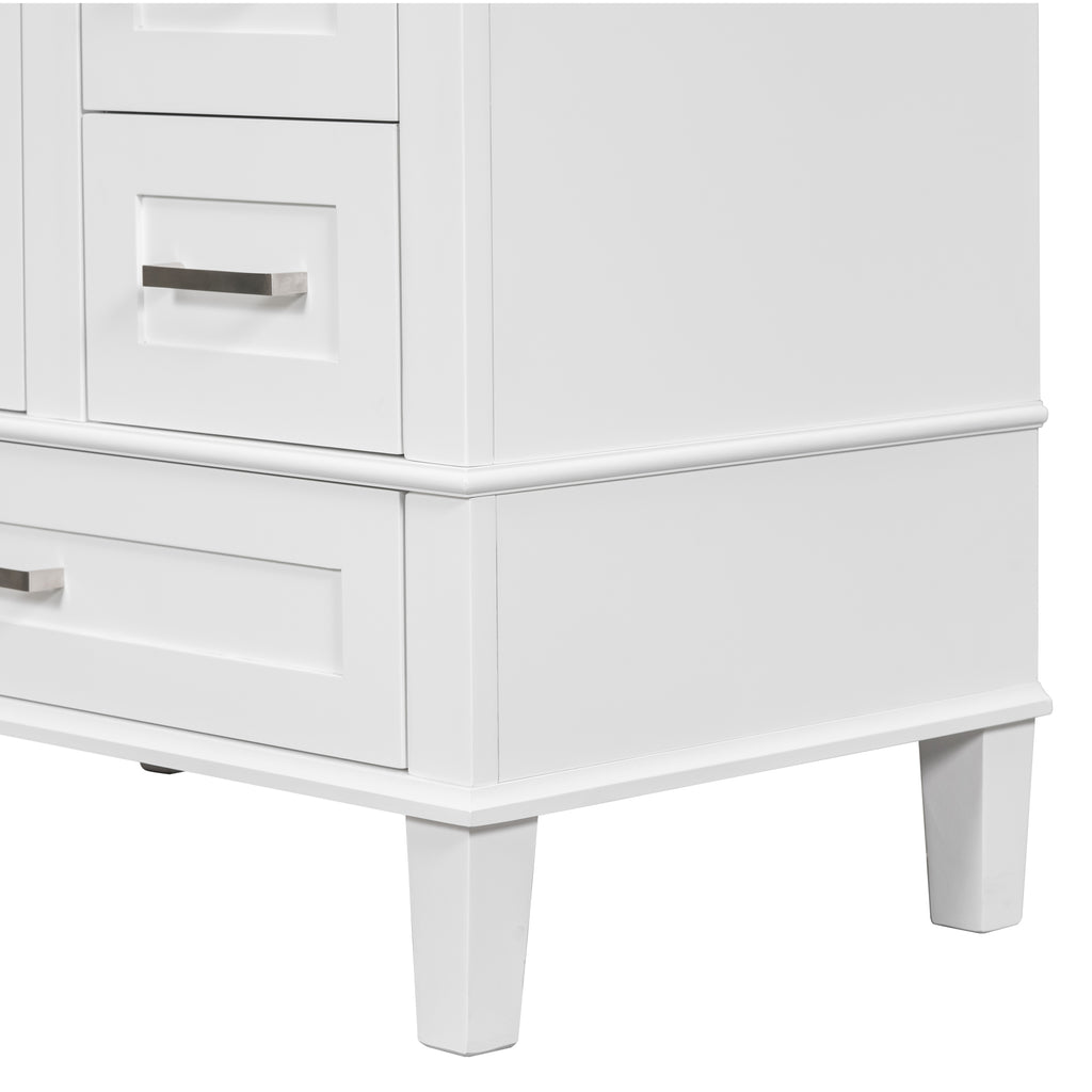 - [Elegantly Modern Design]The white cabinet with a white countertop creates a refreshing color combination that catches the eye. Its sleek lines and sliver handles add a modern touch, enhancing the aesthetics of your bathroom.
