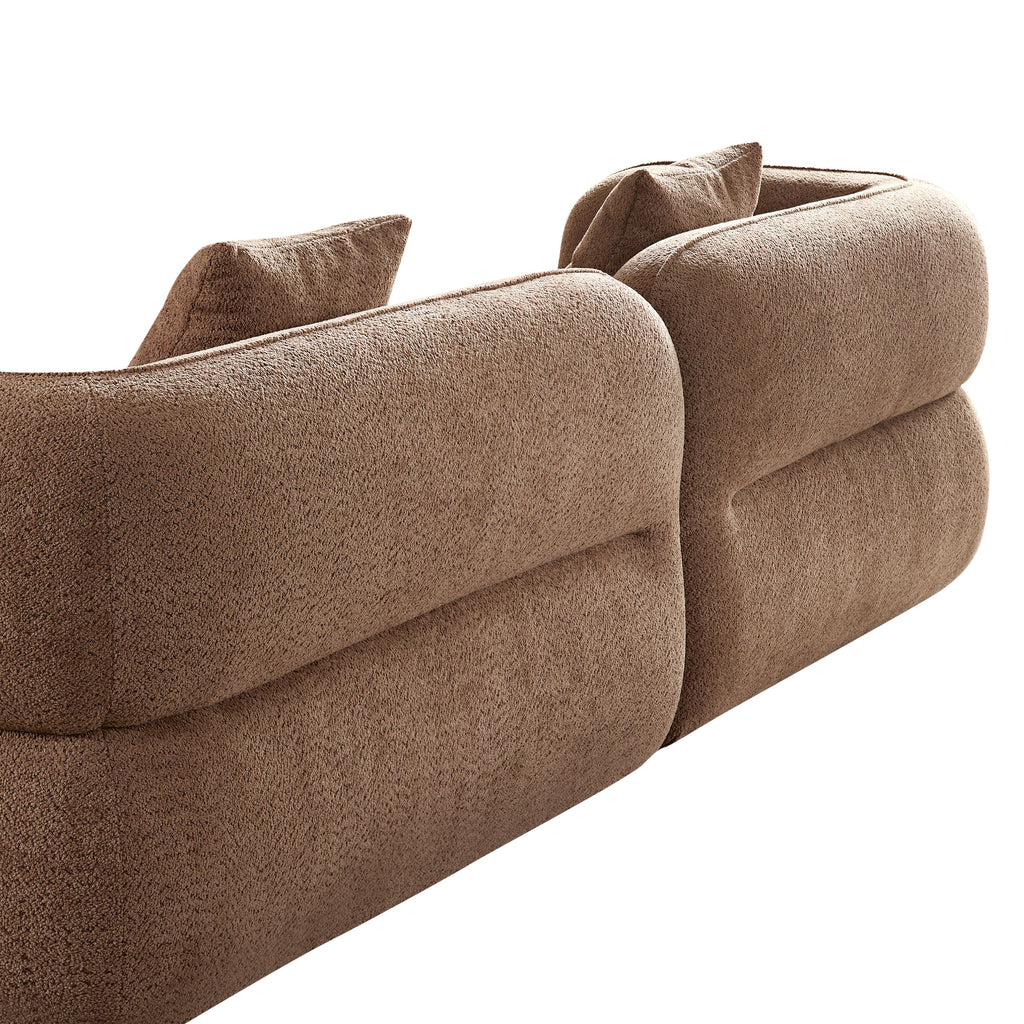 - Camel color, two-part sectional sofa, durable fabric, solid wood frame, high density sponge filling, creative inspiration from toast, with 2 throw pillows.