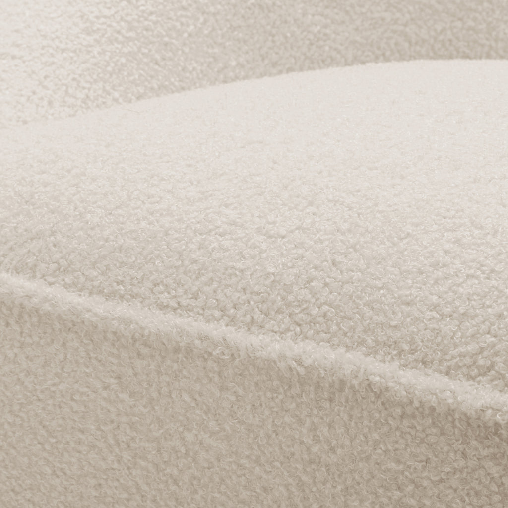 - Materials: Solid wood and plywood frame, 100% Polyester Boucle fabric in Milky White