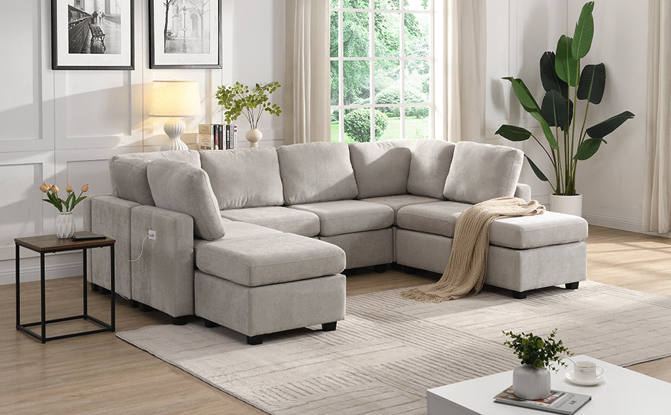 - Free Combination - Our sectional sofa comes with two movable ottomans, allowing for versatile configurations. You can easily rearrange the ottomans to create various layouts, including oversized U-shaped sofa, or even transform it into a sofa bed.