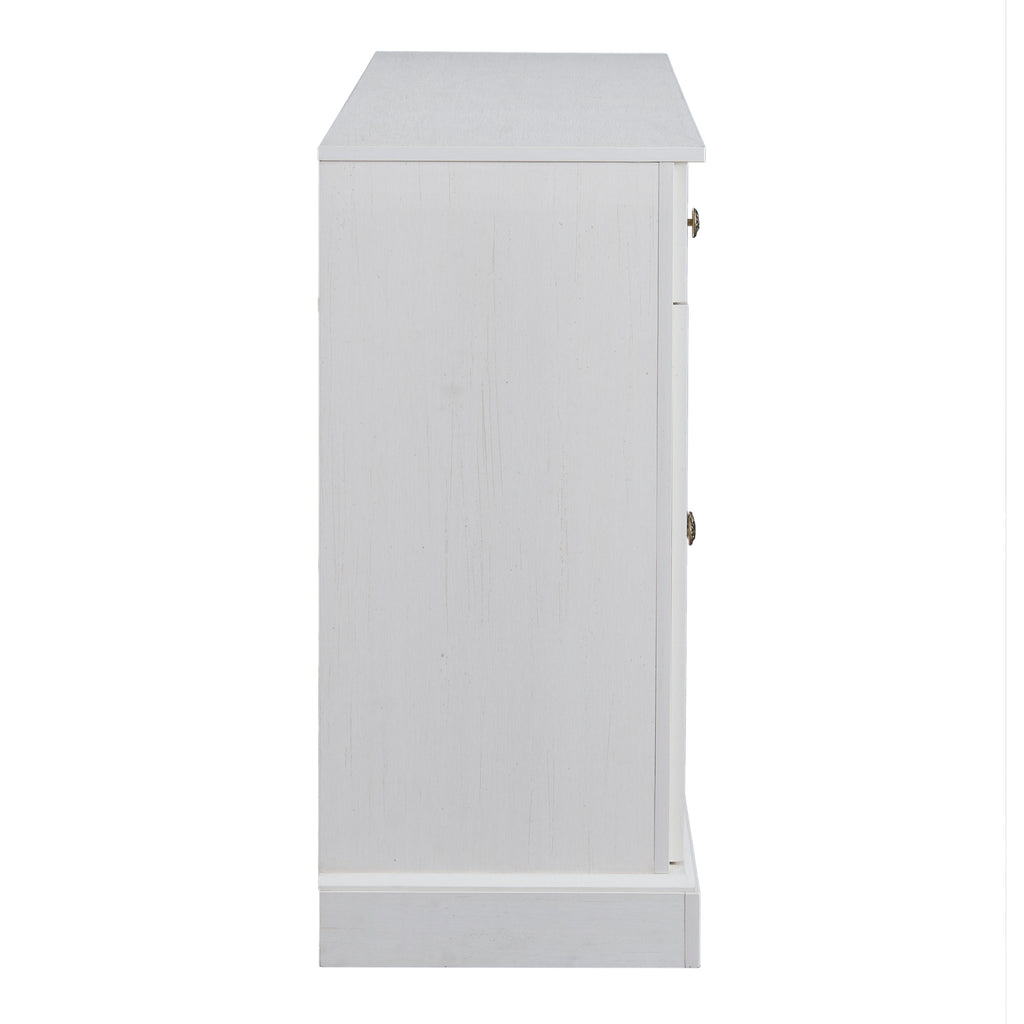 Made of high quanlity particle board and MDF mateiral, the sideboard buffet storage cabinet will not easy to deform after years of use. In addition, the shape design of the bottom base increase the stability of the storage cabinet. The top surface can support up to 70lbs. This buffet cabient features smooth sticker finish and framed doors that adds a touch of beauty and modernity. It is designed with uniquely patterned knobs, which makes this buffet looks much more unique and retro.