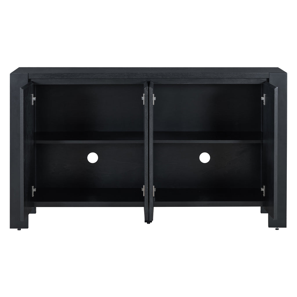 - Spacious Storage Space: This 4-door storage cabinet provides generous space for dinnerware, books, and more. The back panel features cable management holes, allowing you to easily arrange wires for electronics, ensuring a clutter-free environment. The adjustable shelves inside the wood buffet cabinet let you customize the interior space to meet your needs. Shelves can also be removed to maximize storage capacity. This sideboard cabinet measures 59''L × 15.9''W × 34.1'H.