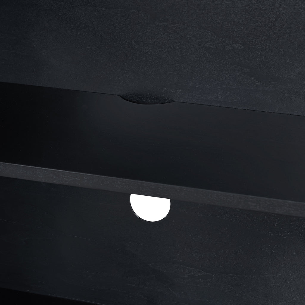 - Timeless 4-Door Design: This sideboard buffet cabinet features a symmetrical four-door design, showcasing clean lines. The surface finish of this wood sideboard is a highlight, combining oak veneer with a distressed finish to emphasize the warm, natural texture of wood. Available in three colors—natural, black, and navy—this buffet cabinet with storage adds a touch of rustic elegance to any room.