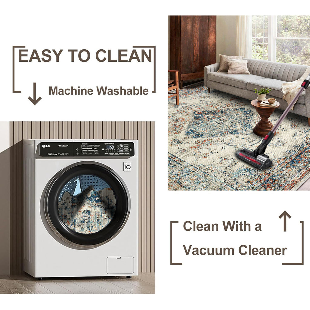 2.Easy to Clean: Use vacuum to clean the rugs regularly to prevent dust and crumbs from setting into the fibers, Machine washable rug making it easy to maintain a fresh and clean appearance.