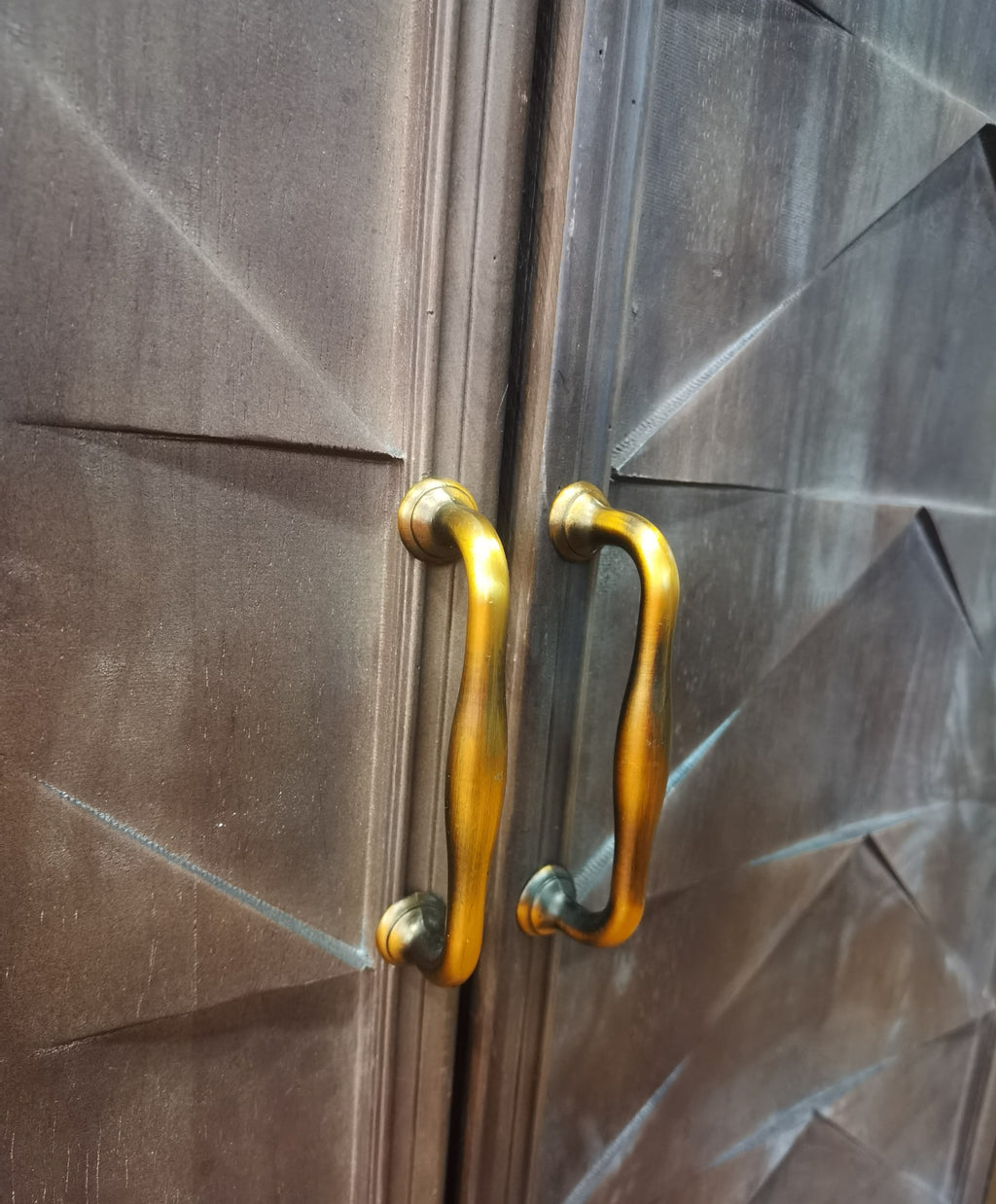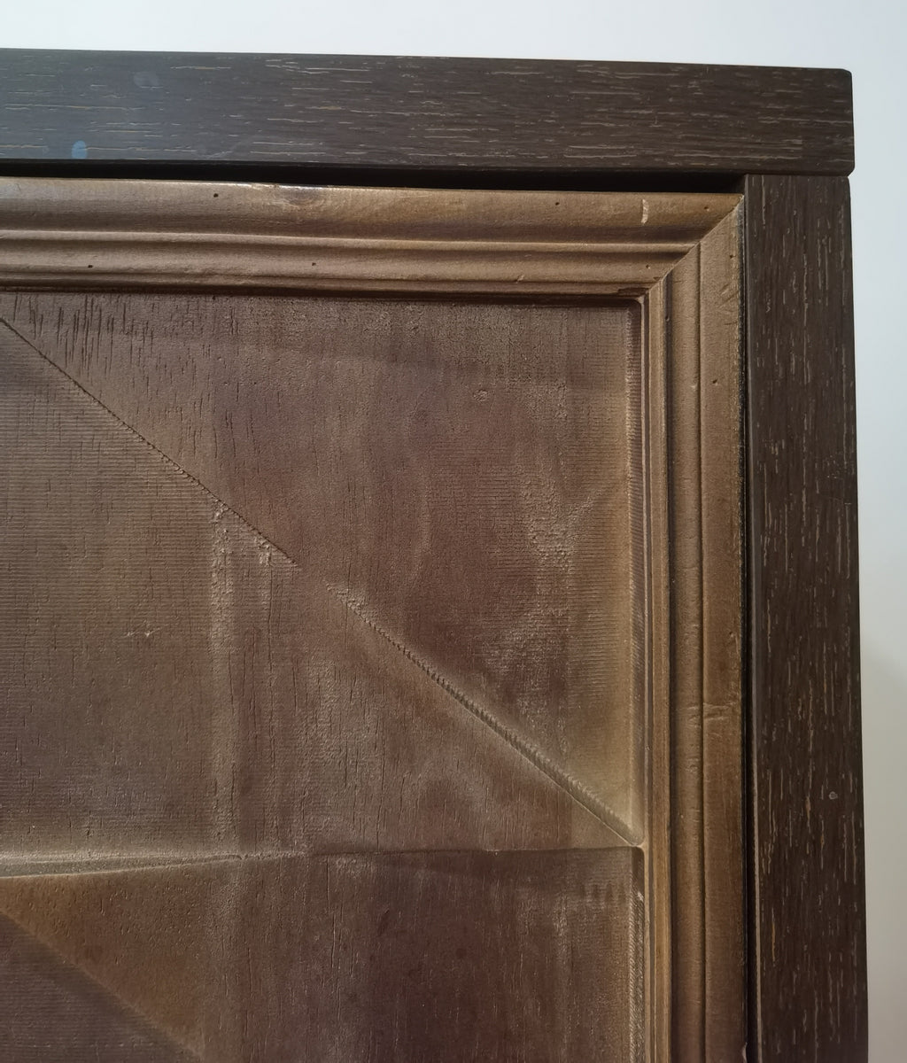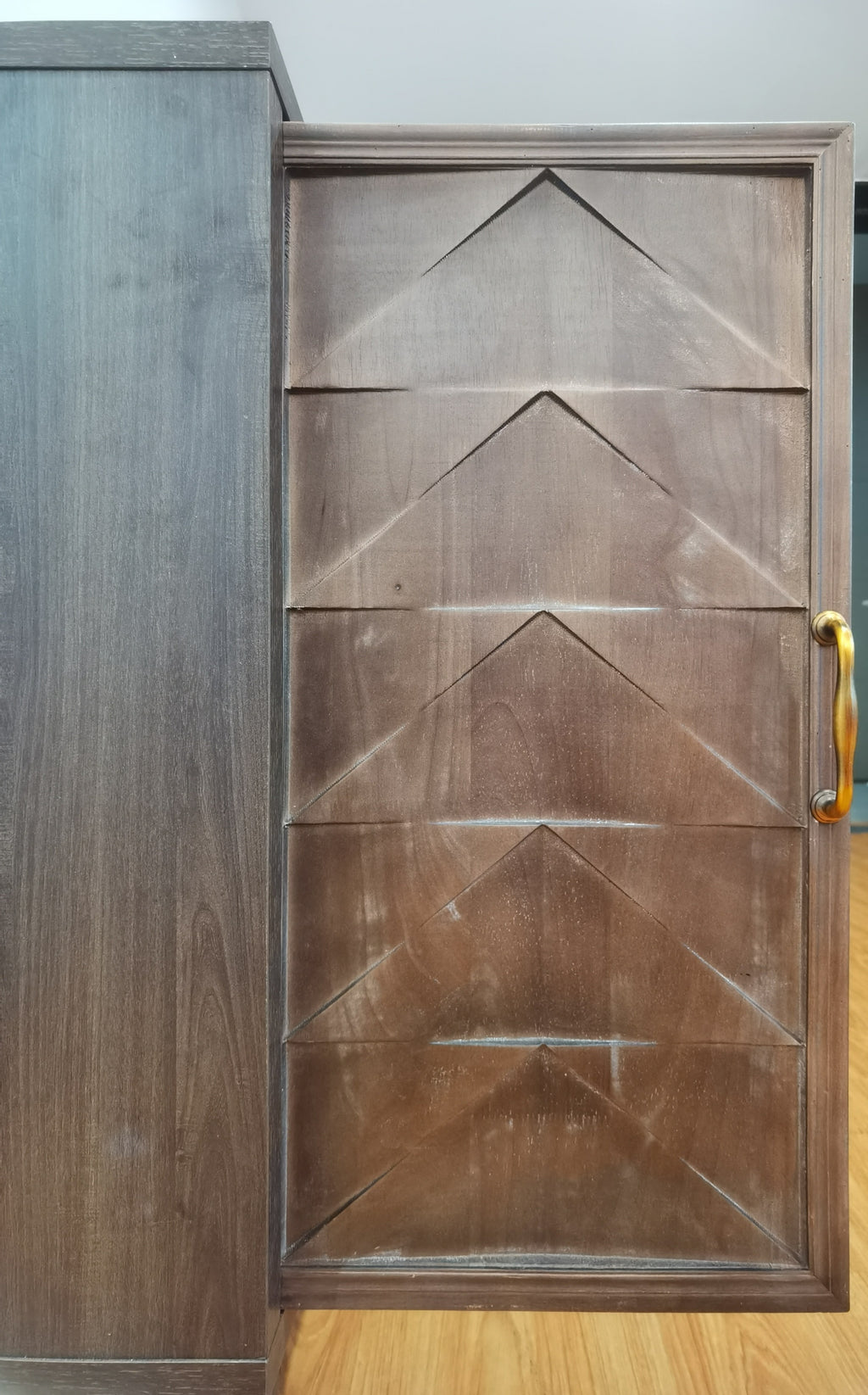 - 【Retro Accent Cabinet】This 55-inch Brown sideboard buffet cabinet features 4 doors and two layers of partitioned storage,Solid wood door panel, composed of multiple triangular wooden blocks hand spliced together,the inside of the movable laminates, and three adjustable,Made with retro vintage craftsmanship,Its harmonious blend of meticulous craftsmanship and contemporary design that can match with any style of your room.