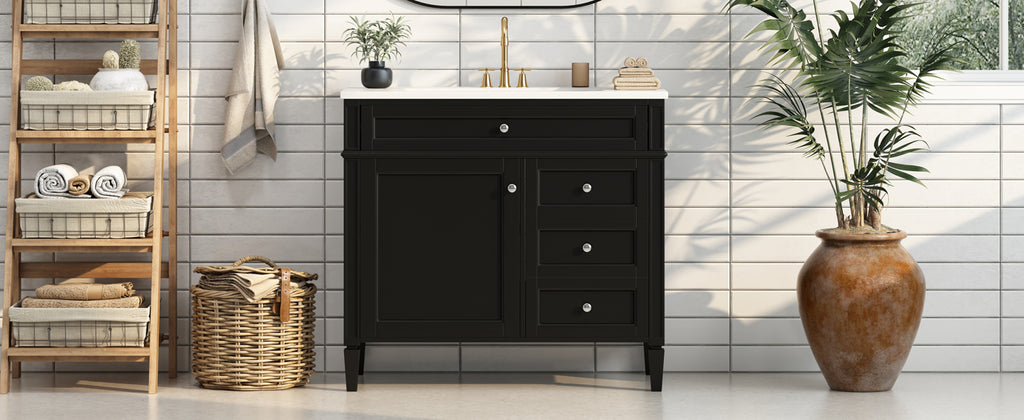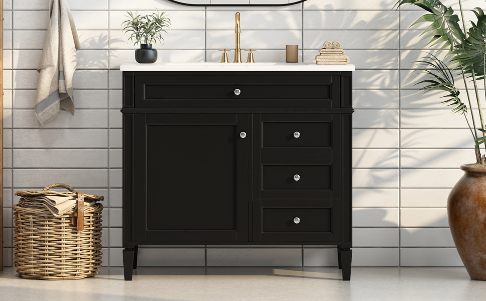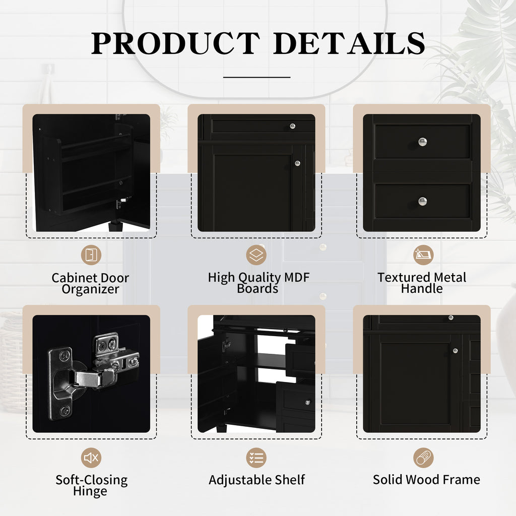 - [ Multi-Purpose Cabinet & Concealed Storage ] Are you looking for stylish and functional storage solutions for your bathroom? Our bathroom vanity provide ample space for all your toiletries and bathroom essentials. The combination of the cabinet body and the drawer perfectly stores all kinds of bathroom products and keeps the necessities away from water stains and dust. Soft-close doors and drawer fronts feature a water-resistant paint finish for durability.