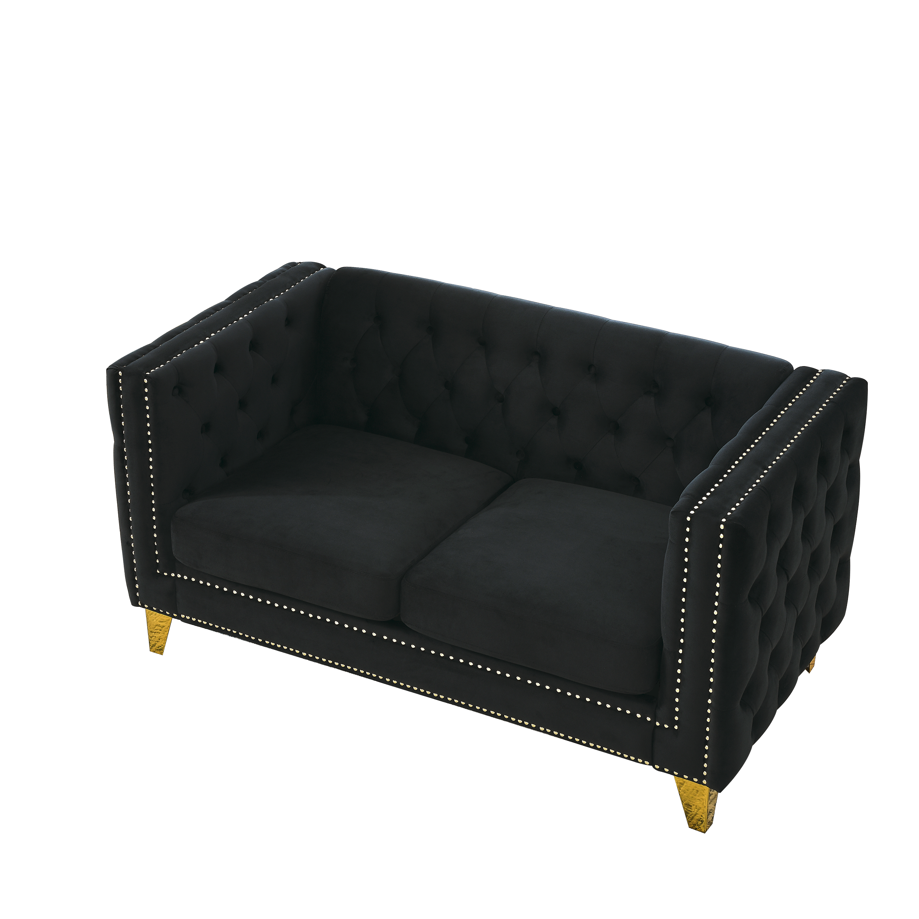 Product Name. Product Name. Two-person sofa. Overall size. Please refer to the picture. Detailed dimensions. Please refer to the picture. Package size. Please refer to the description. Package weight (pounds). Please refer to the description. Product weight (pounds). Please refer to the description. Does the product contain pillows: No. Load capacity: 250 lbs/seat. Assembly required. Required (Please refer to the manual). Fabric material: velvet. Filling material: cotton. Sofa feet: metal. Decoration: copper nails. Frame material: solid wood + plywood. Seat structure: sponge + spring package. Country of origin. China. Note: Manual measurements have been used and there may be some reasonable errors. All pictures are taken based on actual samples, there may be slight color differences due to lighting or monitor.