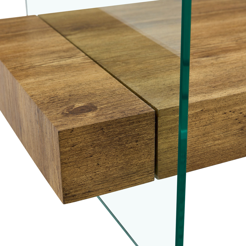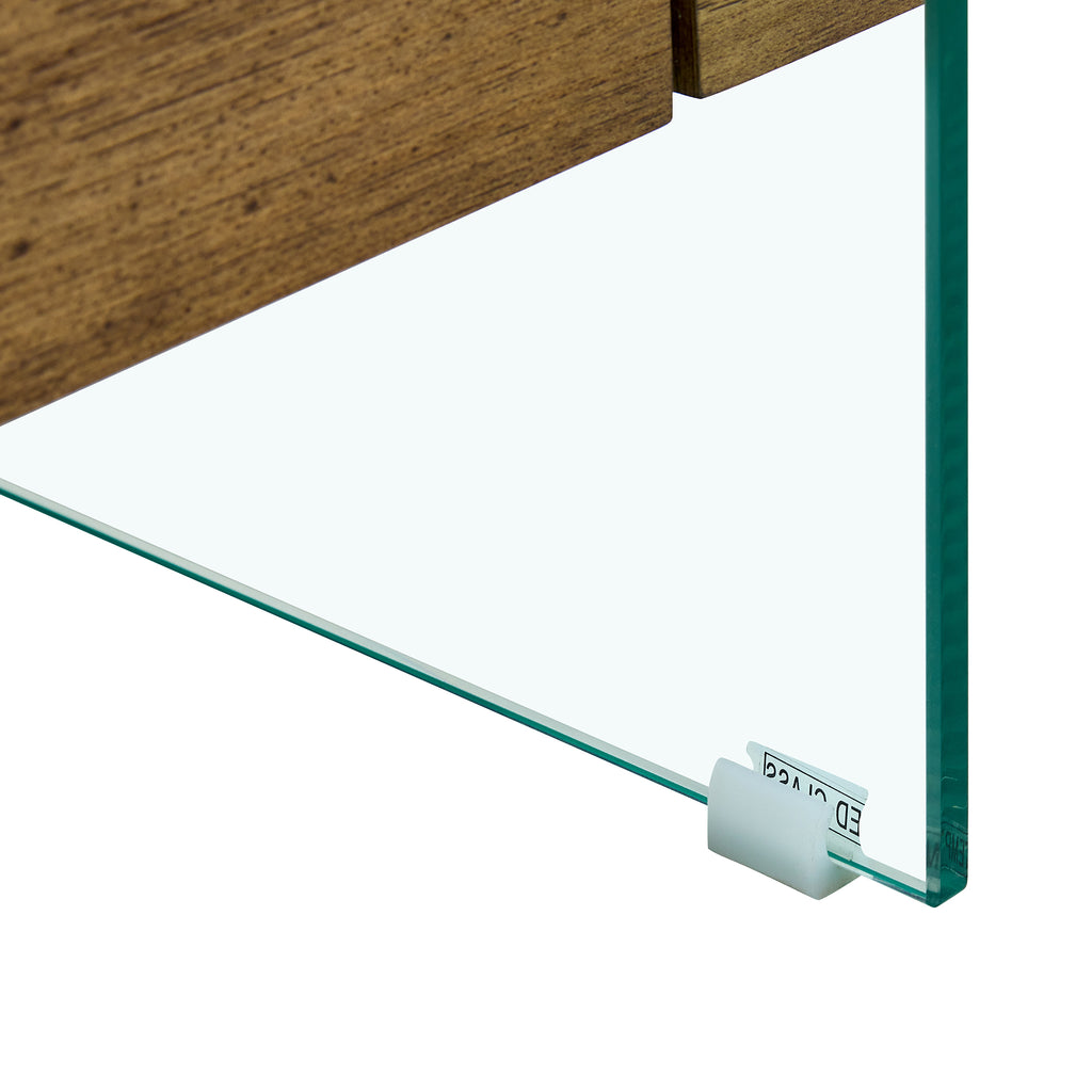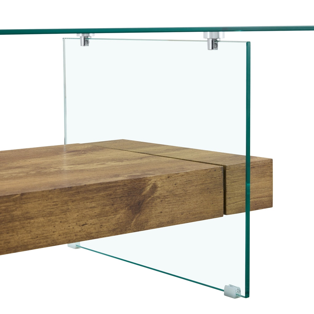 - Two-Tier Design: This coffee table features a two-tier design with a clear tempered glass top for a modern look and a lower tier with MDF covered in light wood texture sticker for added elegance.