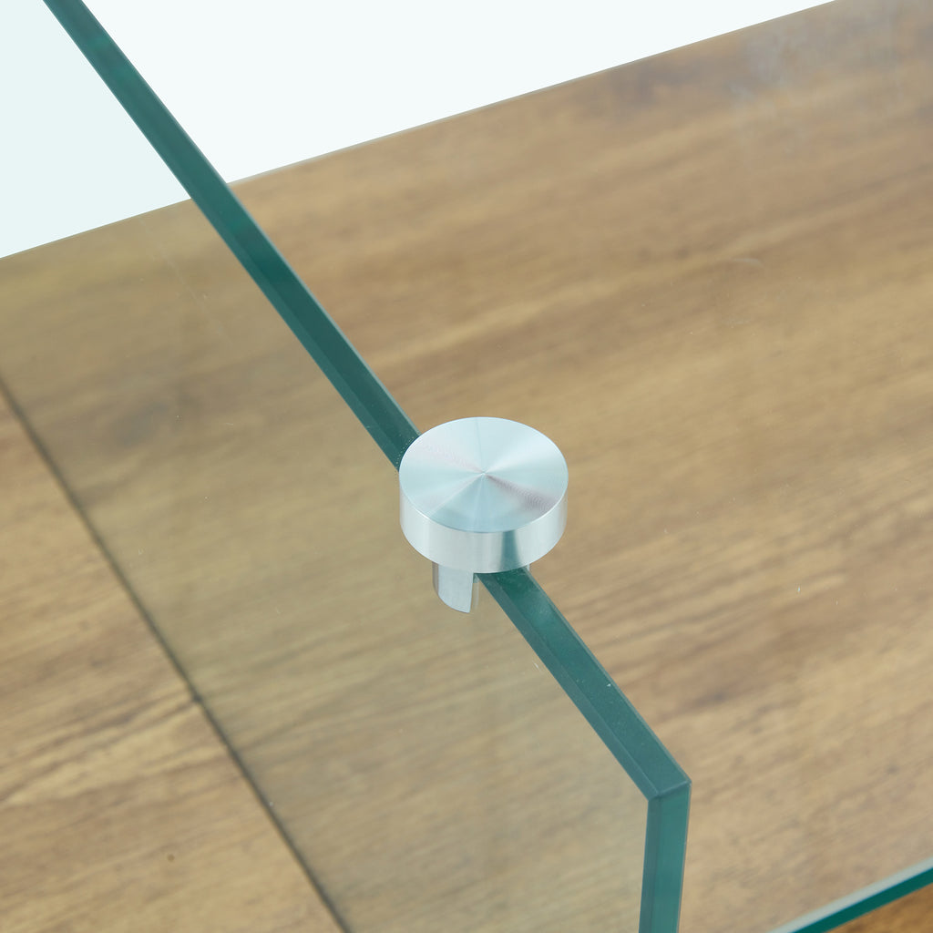 - Transparent Tempered Glass Legs: Equipped with transparent tempered glass legs on both sides, providing a stable and clear support structure.Stable Support: The tempered glass legs design ensures the stability and safety of the coffee table during use.Sturdy Construction: The clear tempered glass legs are securely connected to the tabletop, with non-slip pads at the bottom to ensure stability.
