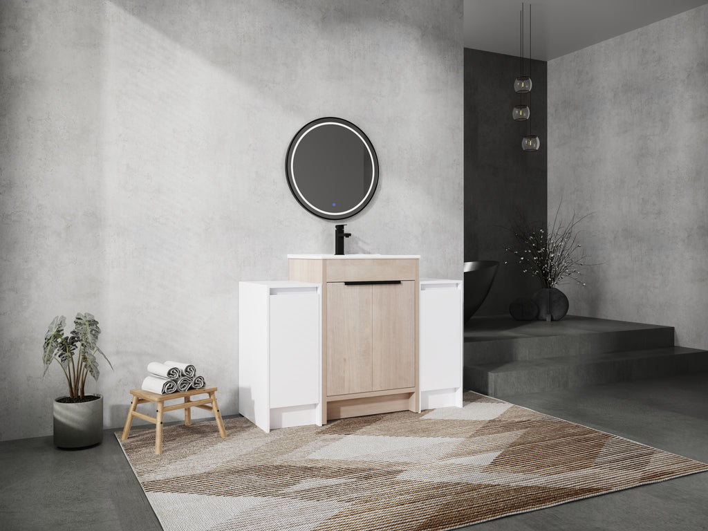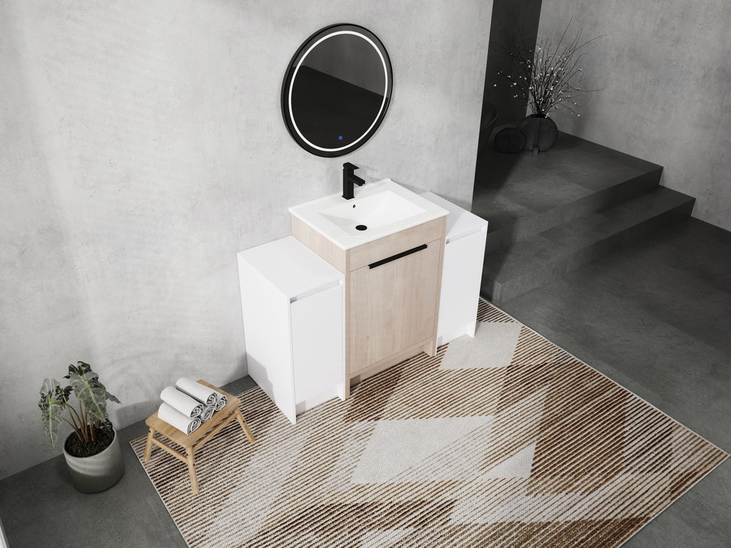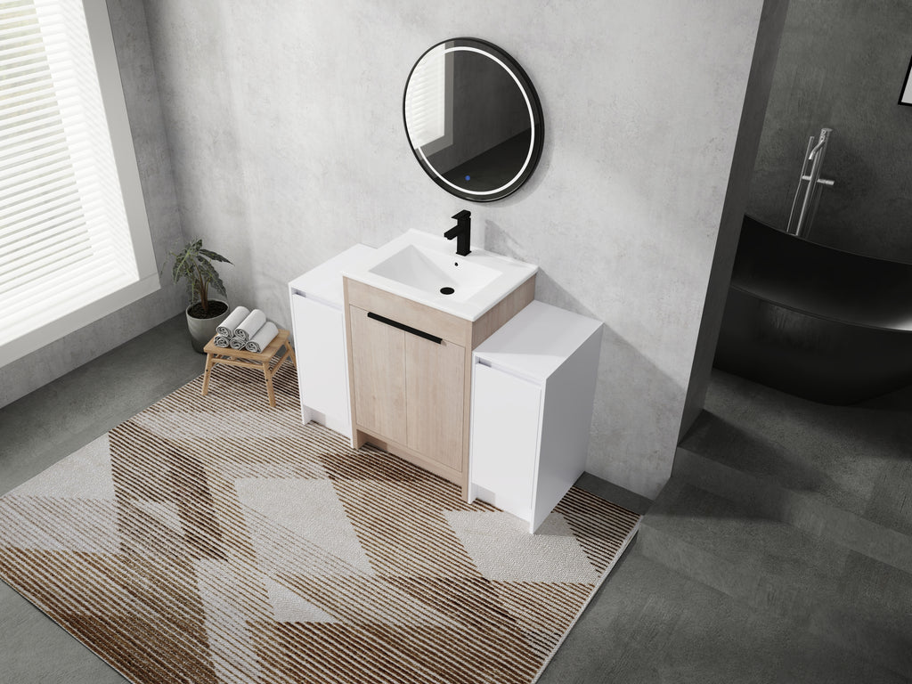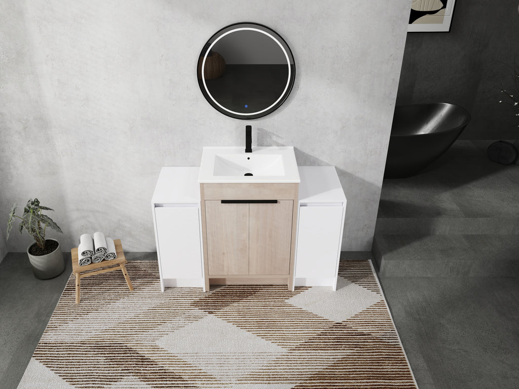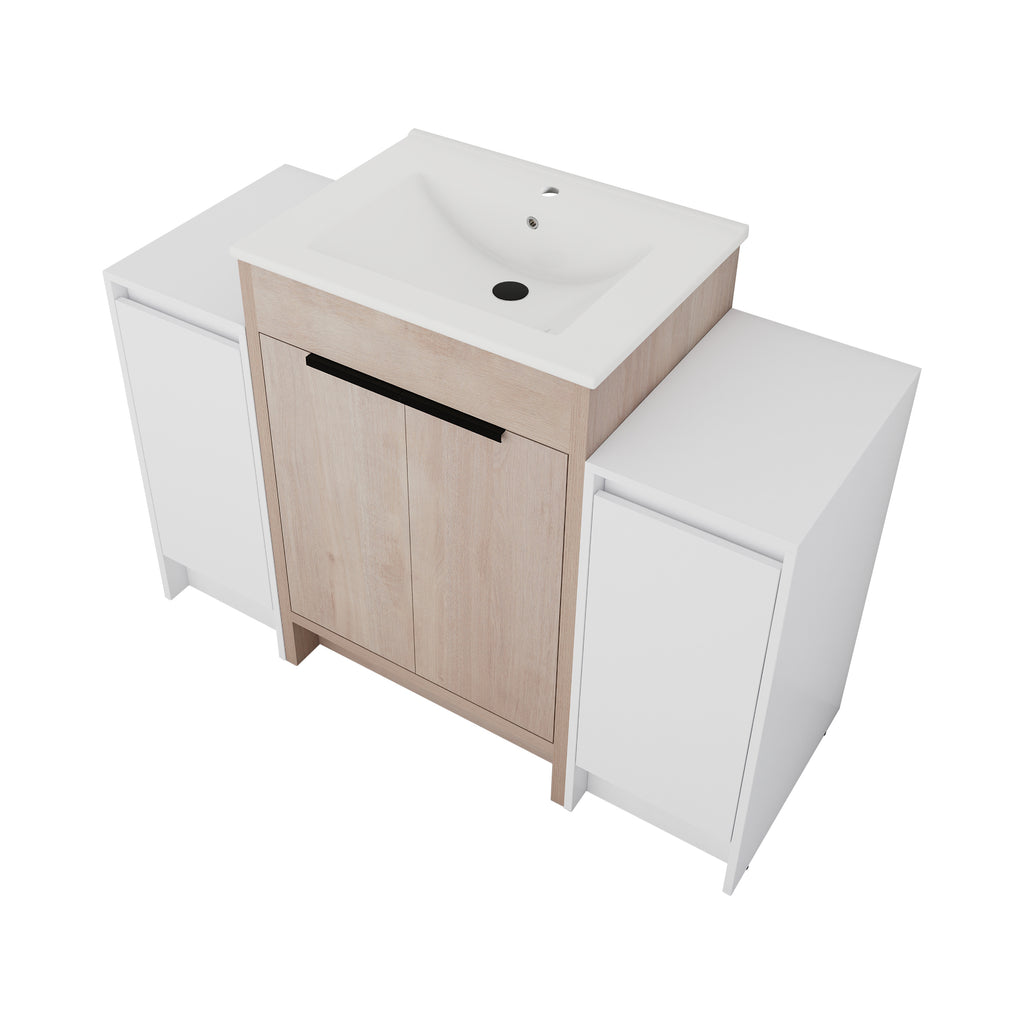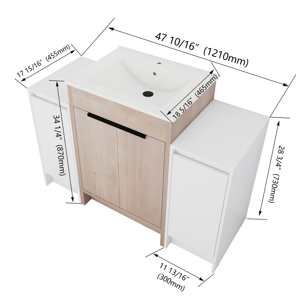| Package includes | -1x Vanity Cabinet; -1x Ceramic Basin; -2x Storage Cabinets; -2x Metal Handle; Parts Package |