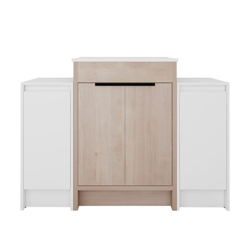 Vanity Base is made of high quality plywood that surface material used 'Scratch & Water-Resistant' melamine, which is designed to not only withstand threats of moisture and humidity but also easy to clean and maintain.