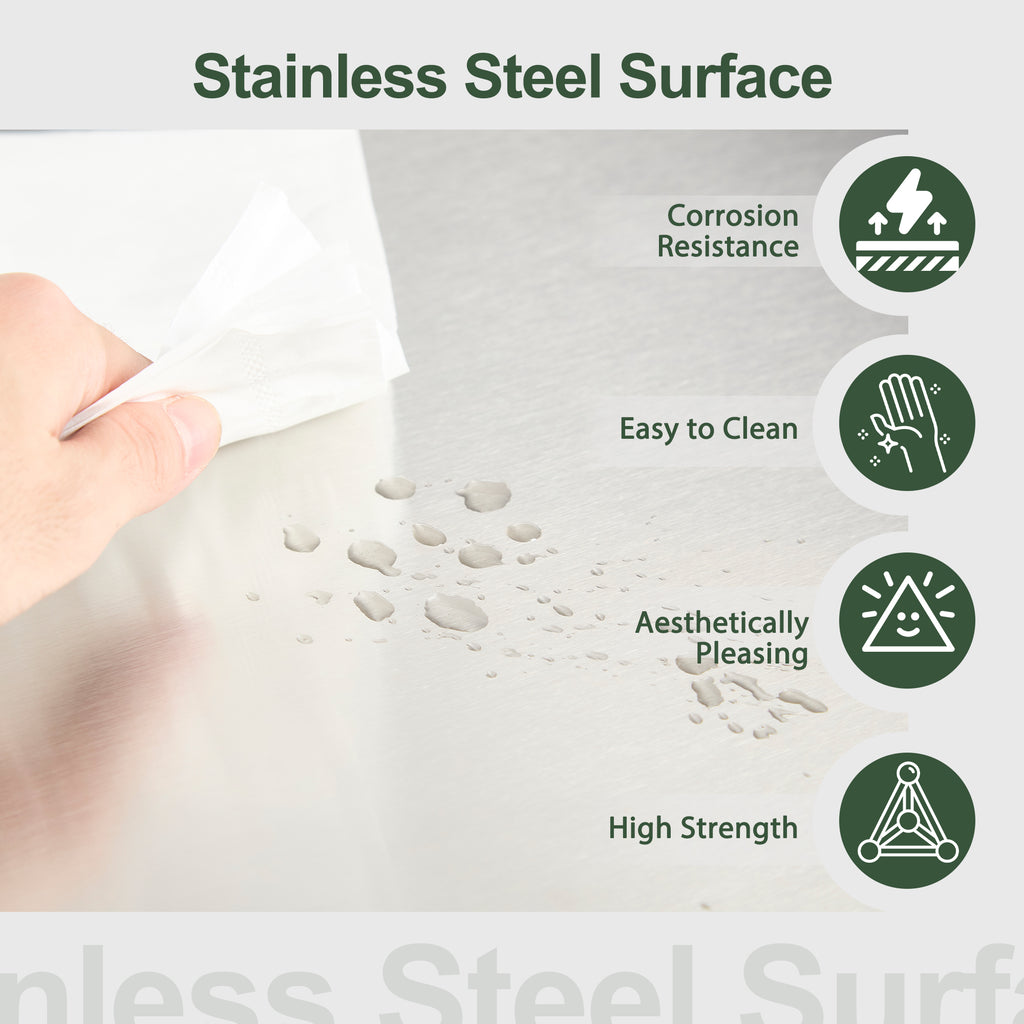 - 【Superior Construction】 Crafted with a robust metal frame and a sleek stainless steel top, this outdoor prep table is designed for both durability and ease of maintenance. It includes 4 handy S-shaped hooks, spacious racks for spices and towels, a designated gas line hole, and built-in bottle openers, ensuring you have everything you need for efficient food prep during your party carnivals.