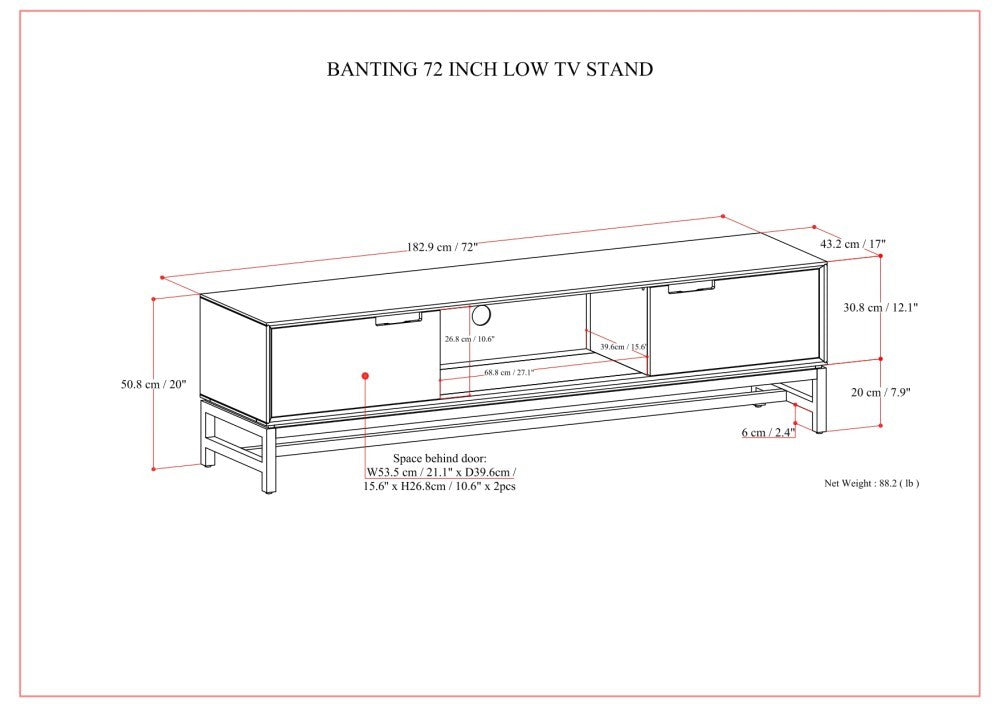 - Features 2 doors opening to spacious storage compartments, and 1 large open area for your media devices