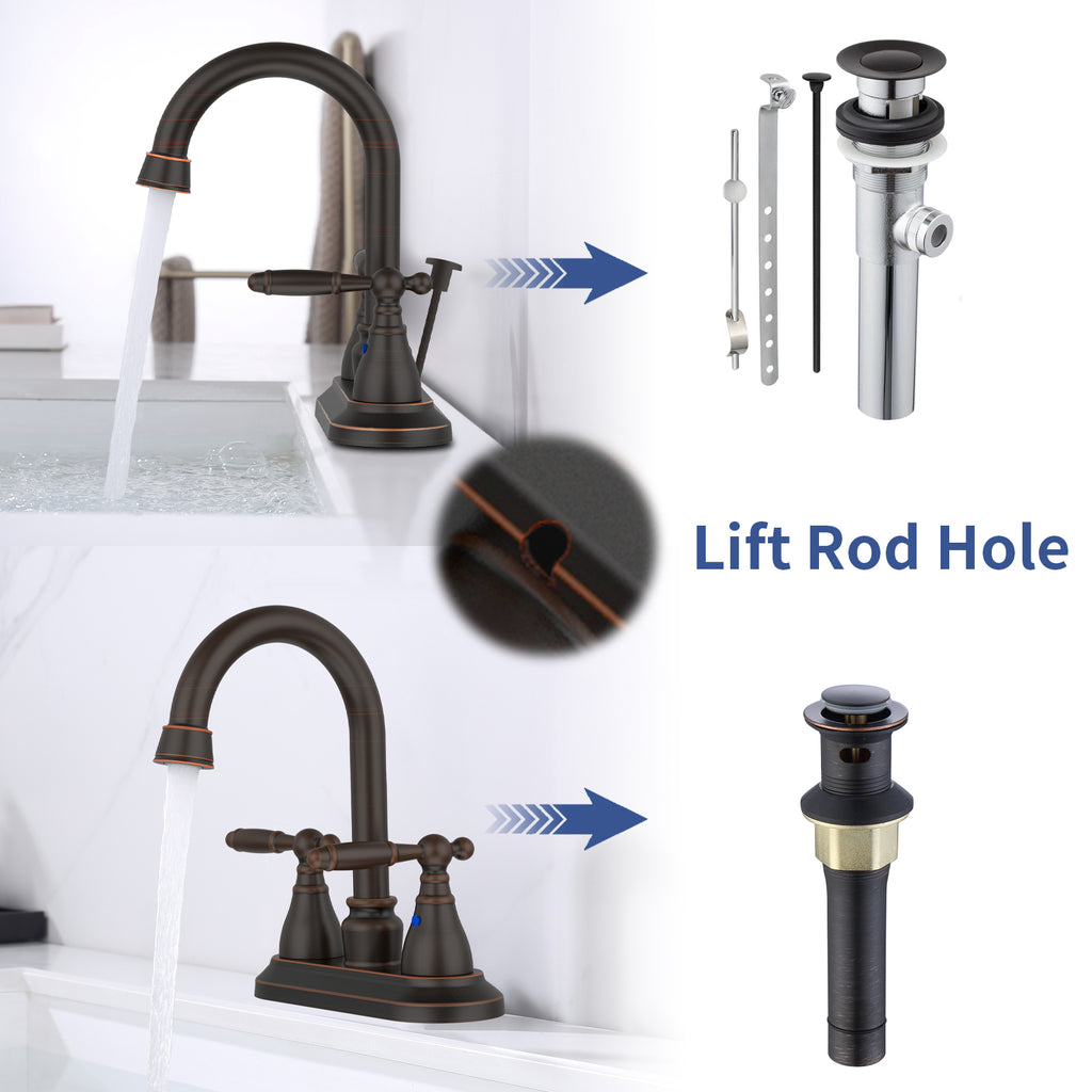 - Multifunctional design ❤ — Bathroom faucet with lift rod hole that provides more possibilities,suitable for traditional and modern design faucet.Lift rod hole can be use for lift rod sink drain, suitable traditional design.For modern design bathroom sink faucet, NOT INCULED DRAIN!!