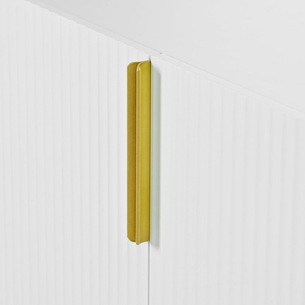 - The sideboard door is designed with wavy stripes, and the uneven geometric lines enhance the three-dimensional effect. Metal door handles and metal legs add texture and luxury to this buffet cabinet. The smooth finish makes the sideboard easier to clean, you just need to wipe the stain with a damp cloth, to extend the life of the sideboard.
