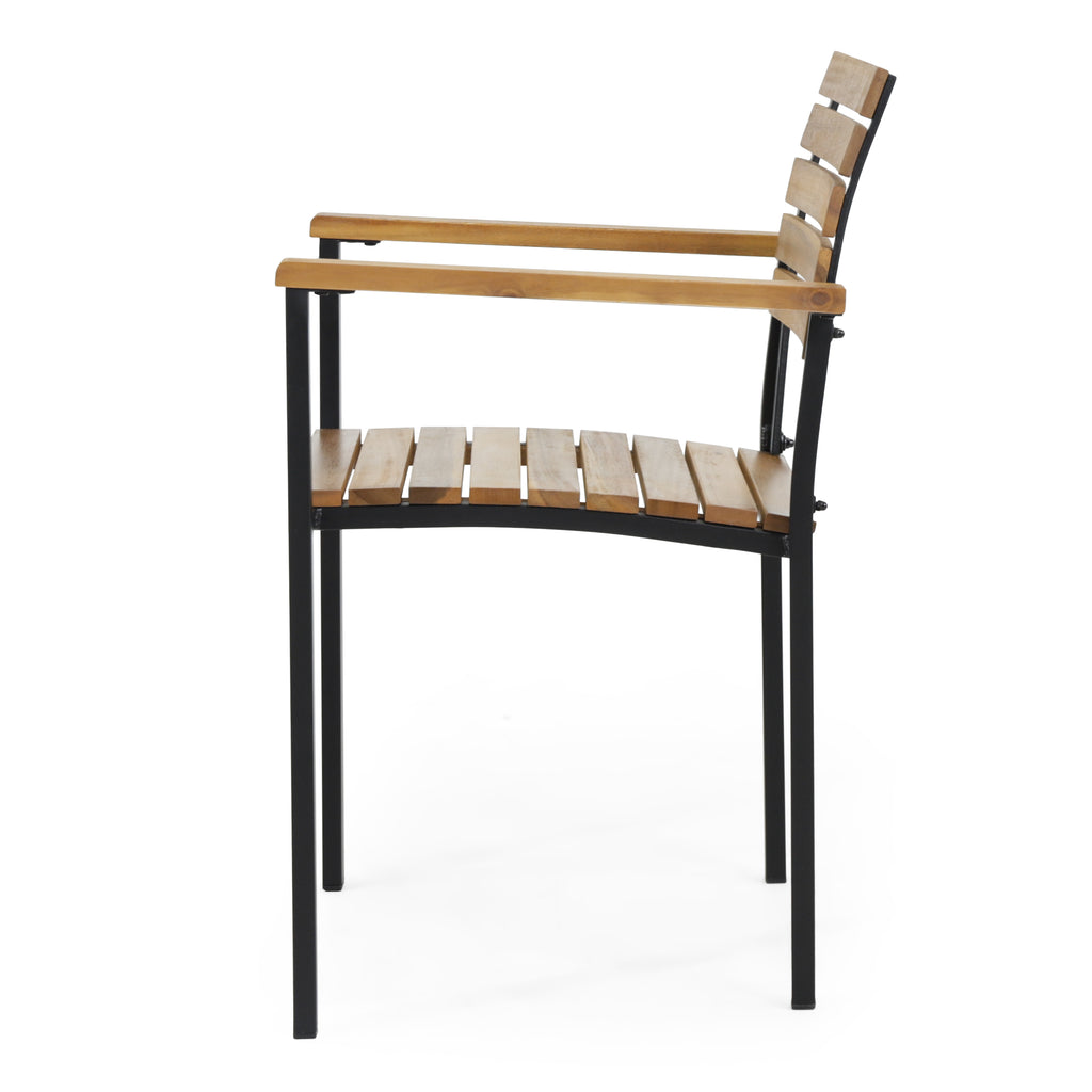 - Featuring classic slat paneling made from gorgeous acacia wood, this set of chairs is the ideal addition to any backyard space.
