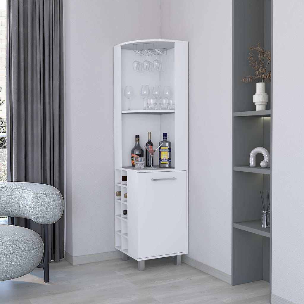 Leah corner Bar Cabinet in Melamine, Glass holder, Wine and wine Rack, White