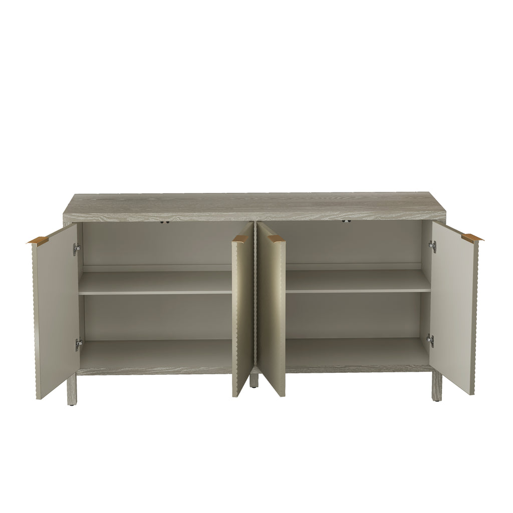 - MODERN DINING SIDEBOARD: This 59-inch buffet features fully concealed hinges to maintain a minimalist look, and the four doors are designed with a beautiful and unique embossed pattern for a modern aesthetic, perfect for high-end home decor; it can be used as a sideboard in the dining room, a TV stand or a decorative cabinet in the living room, an entryway table with storage, or a display cabinet in the office.
