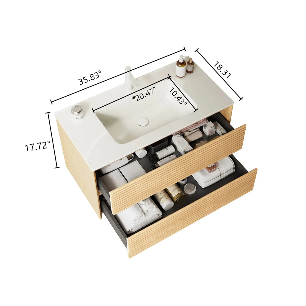 The cabinet of this bathroom vanity is already assembled and comes with a detailed installation manual. In just a few simple steps, you can complete the installation smoothly.