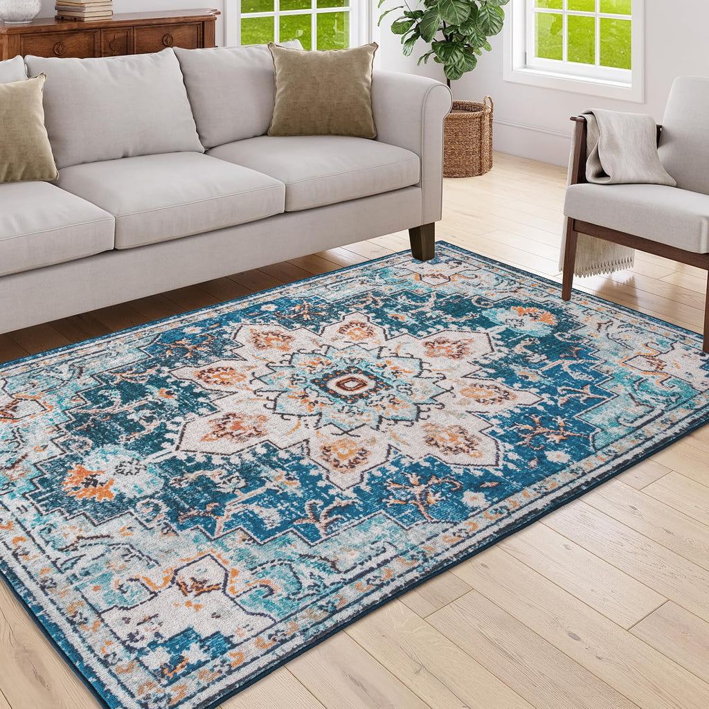 - The area rug has a vintage style and a unique floral pattern, suitable for the living room, bedroom, dining room, laundry room, hallway, kids' room, playroom, kitchen and office.
