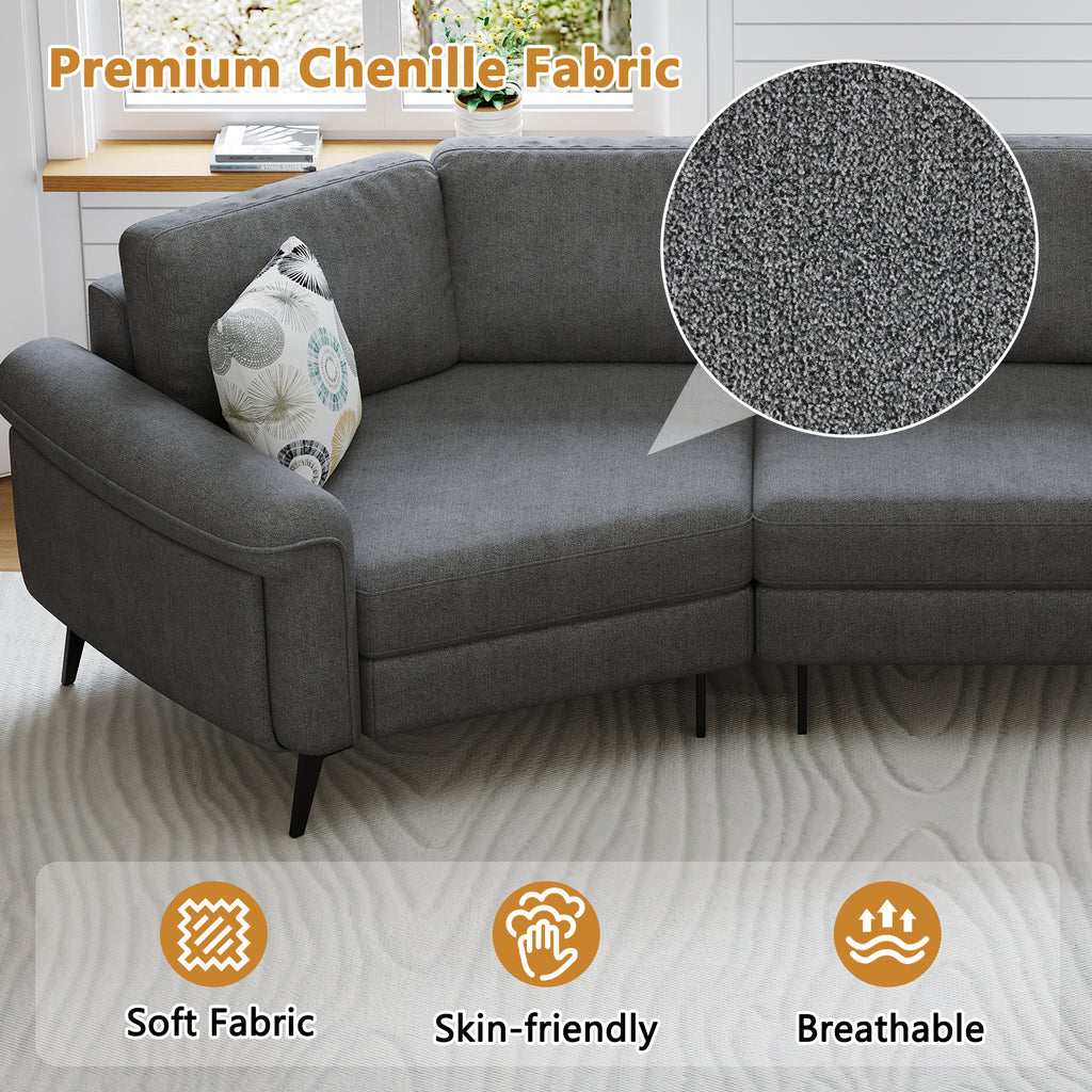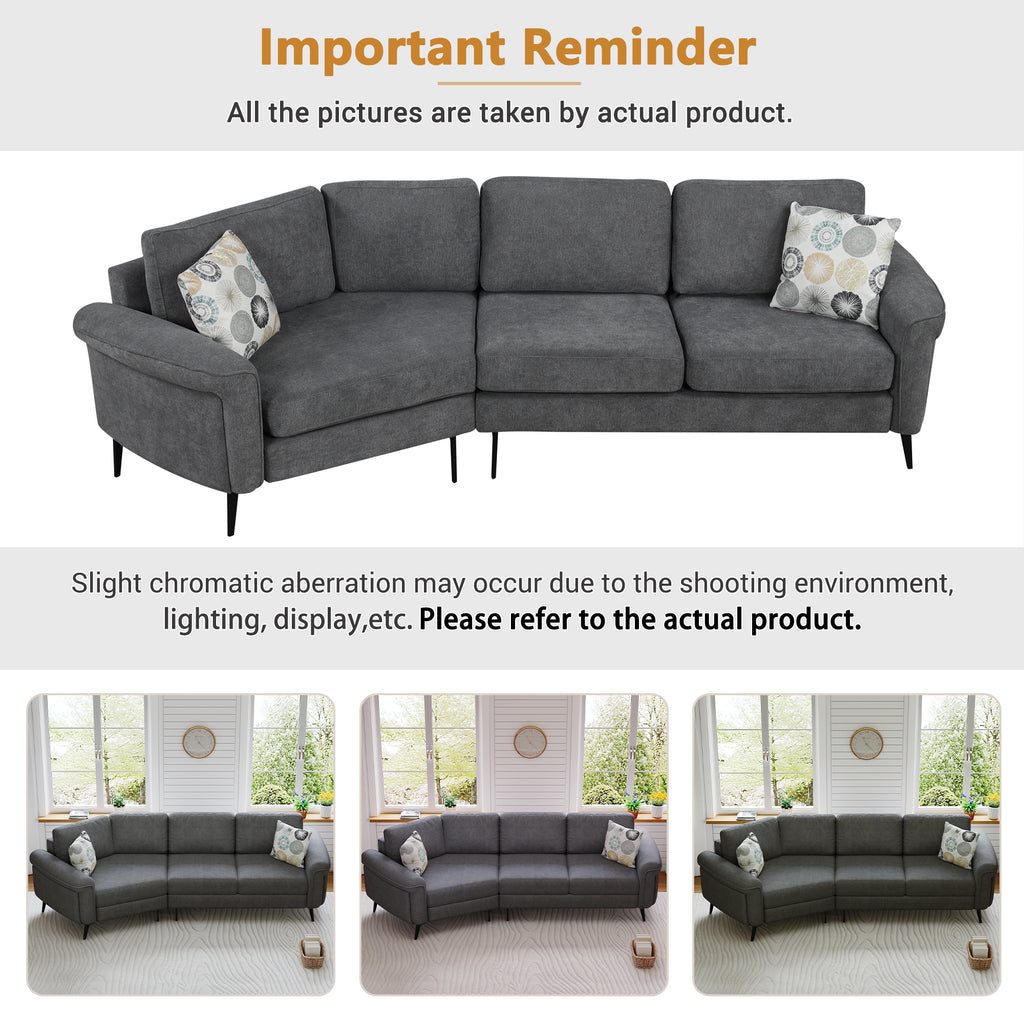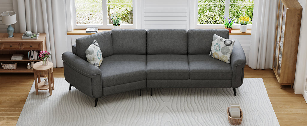- Elegant Design - The three-seat sofa features a sleek, curved design that enhances both its visual appeal and comfort. The gentle arc shape promotes a more relaxed seating experience by allowing for a natural flow of movement and providing better support for the body. This modern, ergonomic design not only adds elegance to any room but also ensures a more comfortable and inviting seating option.