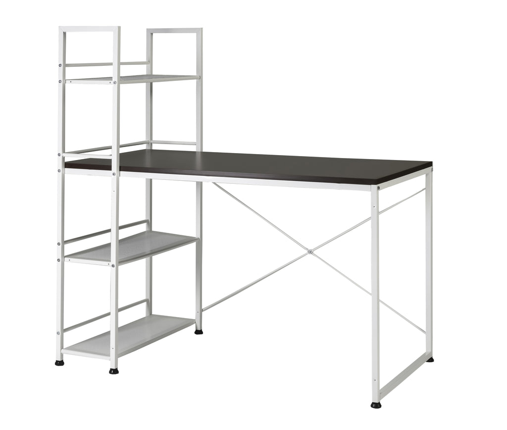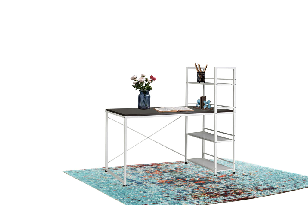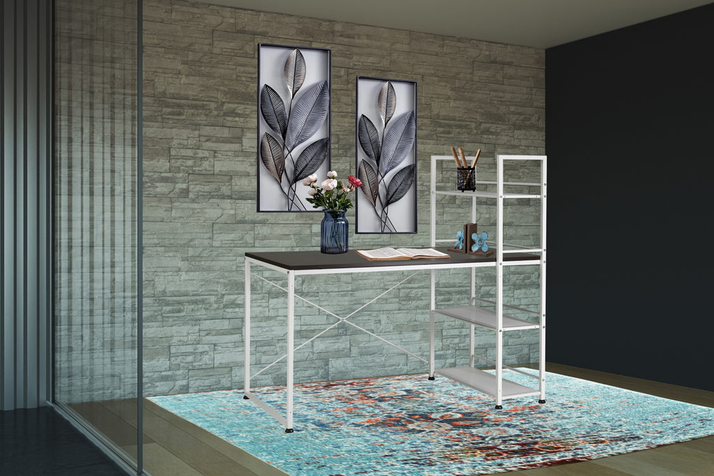 This space-saving reversible bookshelf workstation desk is perfect for maximizing limited space. The desk with 47' inch desk features a white powder-coated steel frame and quality MDF tabletop that easily flips to reveal a handy bookshelf on the reverse side as a multi-function desk 2 in 1 workstation desk provides the best of both worlds. Use the expansive tabletop for your laptop, lamp, and office essentials during the workday by simply flip the desk around to access the built-in bookshelf for displaying your favorite reads. With its space-saving reversible design, this desk allows you to alternate your workspace to match your needs. Ideal for studio apartments, small bedrooms, dorm rooms, and other compact spaces, this convertible desk/shelf unit maximizes your usable space.