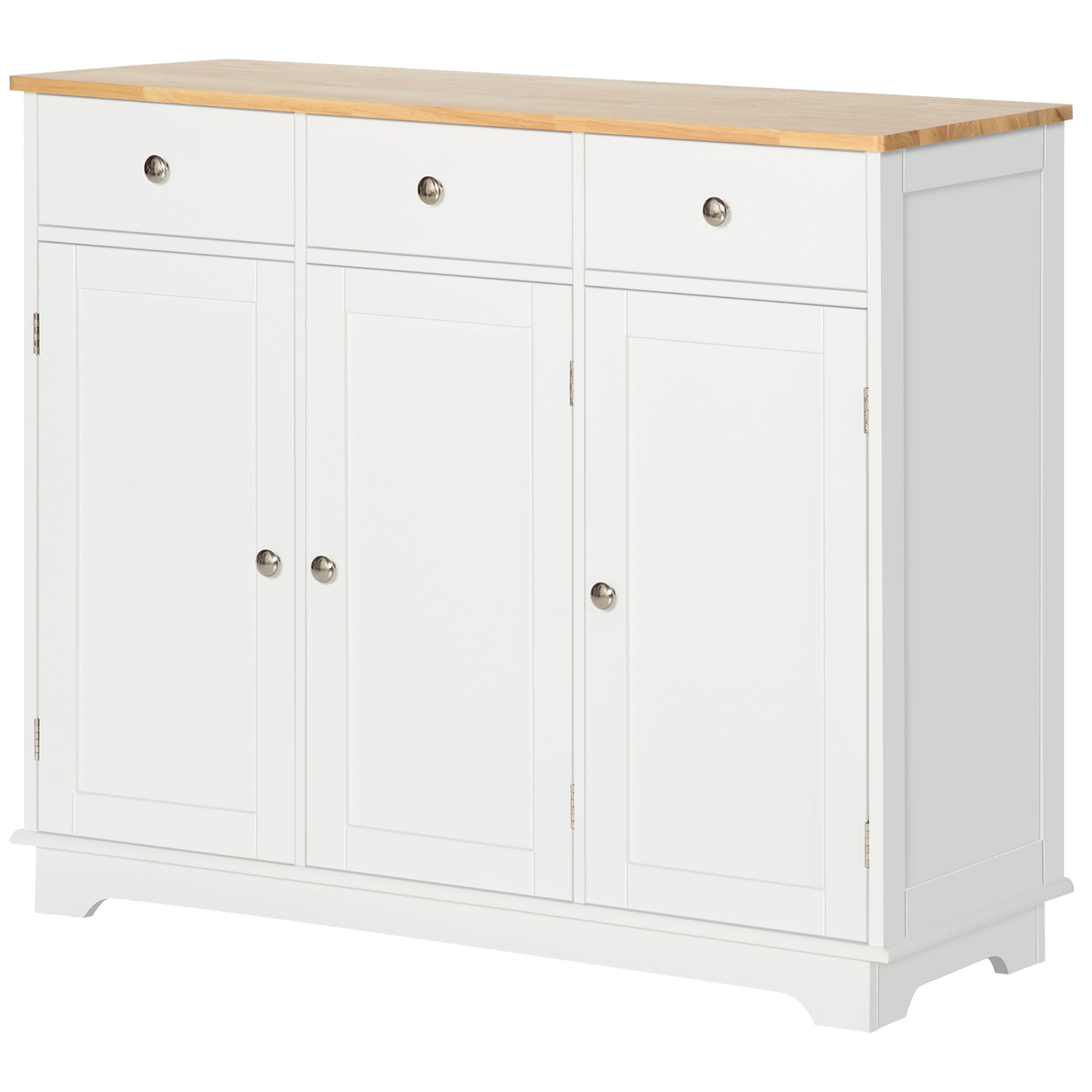- Roomy Storage: This buffet cabinet utilizes 3 large drawers for utensils or napkins and 2-tiers offering storage space for plates, plastic containers, pots, or pans. Keep organized behind doors so your items stay safe and dust-free. The shelf inside is 3-level adjustable to meet various storage needs.
