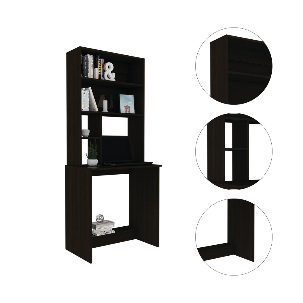 FM FURNITURE Sawgrass Writing Computer Desk, Hutch, Four Shelves ,Black