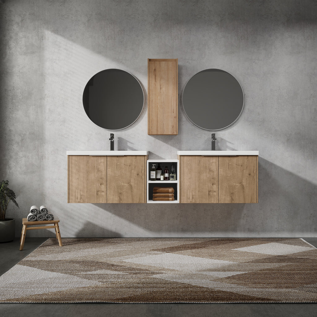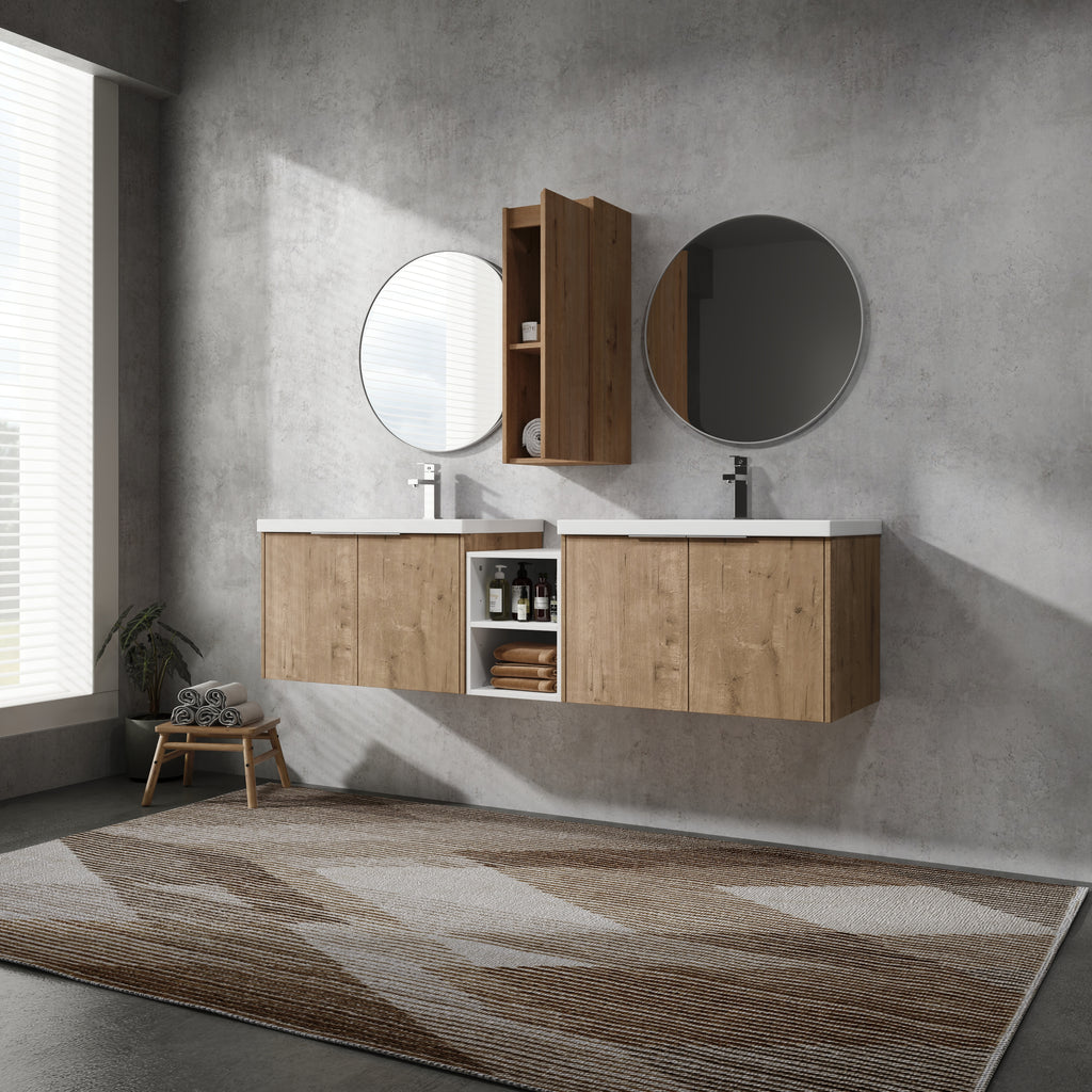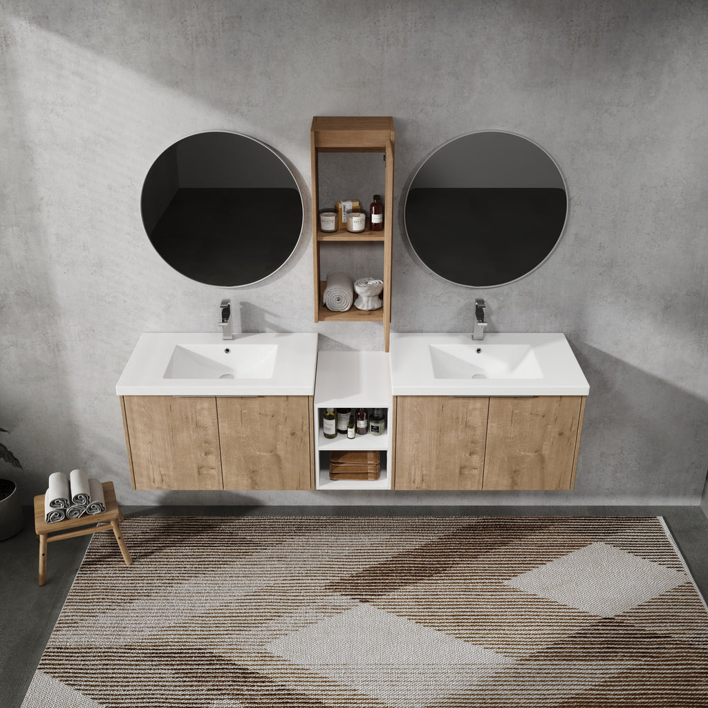 | Package includes: | - 2x Vanity Cabinet;- 1x Small Storage Shelves;- 1x Side Cabinet;- 2x Resin Sink; - 4x Metal Handle; Parts Package |