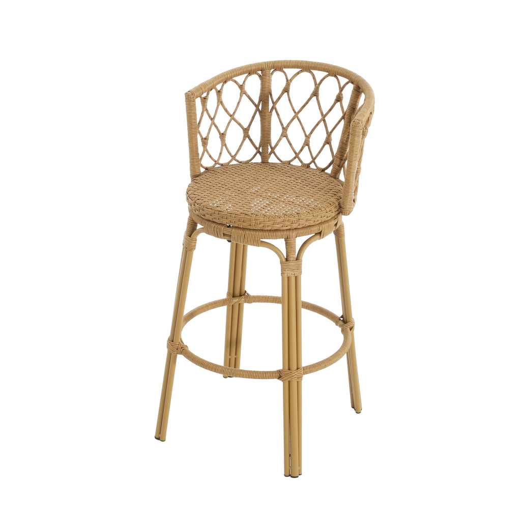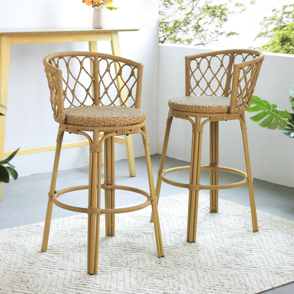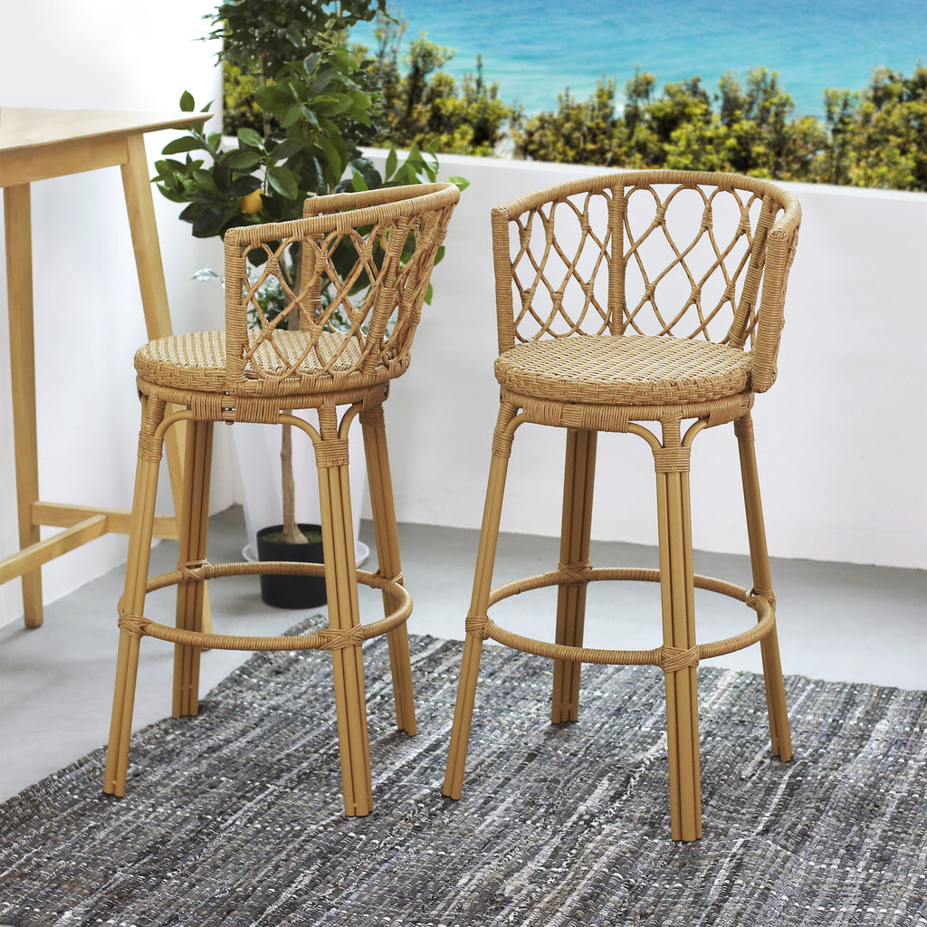 Bringing together elegant lines and a structure that is made to complement any outdoor space, our bar stools tie together your decor in style. Crafted to superior excellence, these bar stools perfectly blend wicker and metal for a stunning addition to any backyard or patio. The wrapped wicker design brings a modern twist to a classic look, making this ideal for any style of decor. Our impeccable bar stool set is crafted from a sturdy metal frame, giving you and your guests a stable and reliable place to perch while enjoying a cocktail or two in the great outdoors.Enjoy the summer breeze with a chilled drink and a lovely view of your backyard from the comfort of our bar stool set.