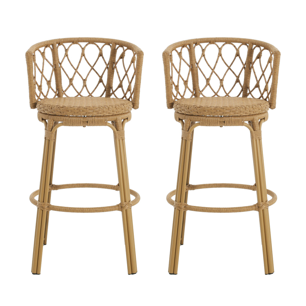 Bohemia Outdoor Brown Wicker Bar Stool, Set of 2