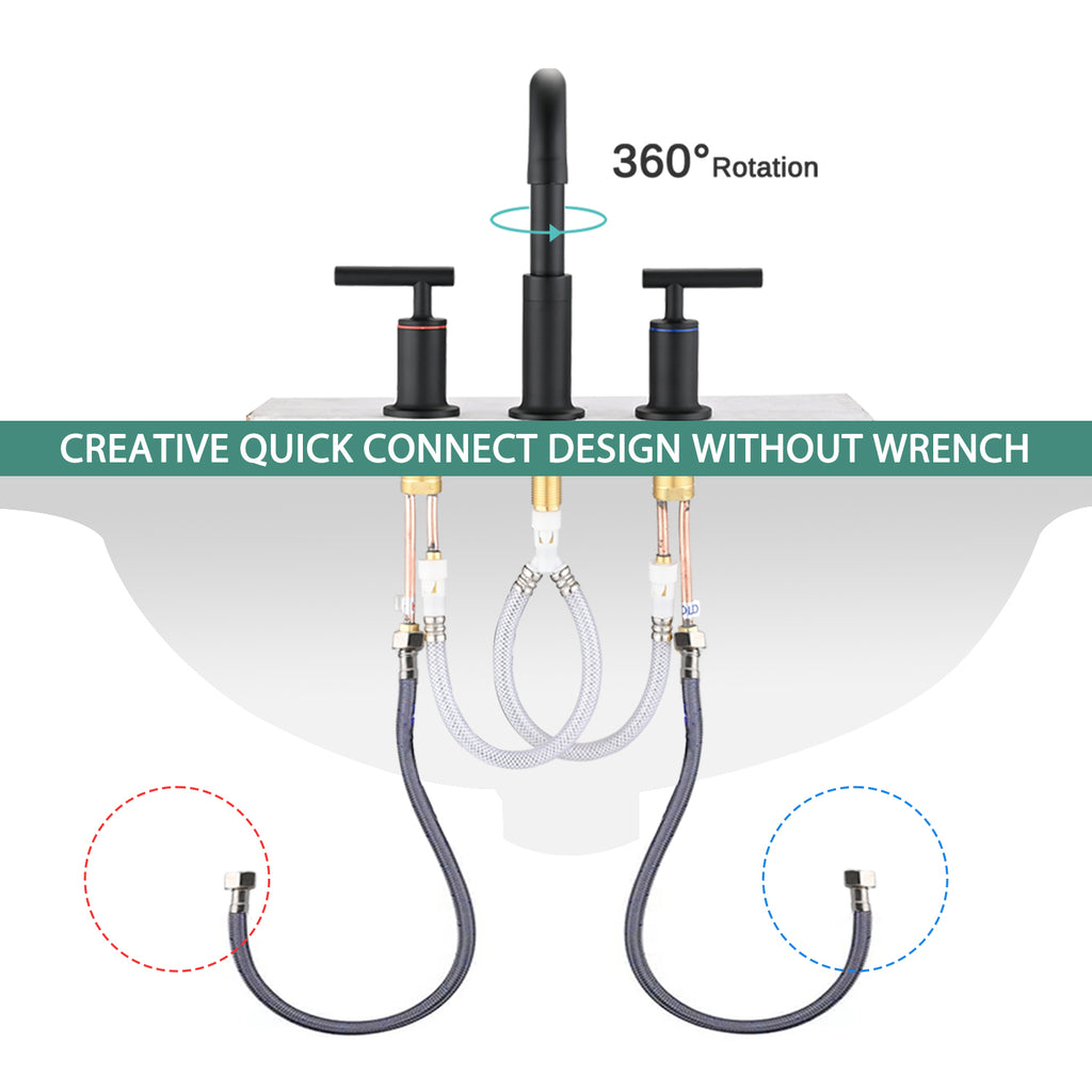 - Drip-Free operation ceramic disc valves prevent from leaking. 3-hole 2 handle design more precise switch of hot & cold water. Easy to operate.