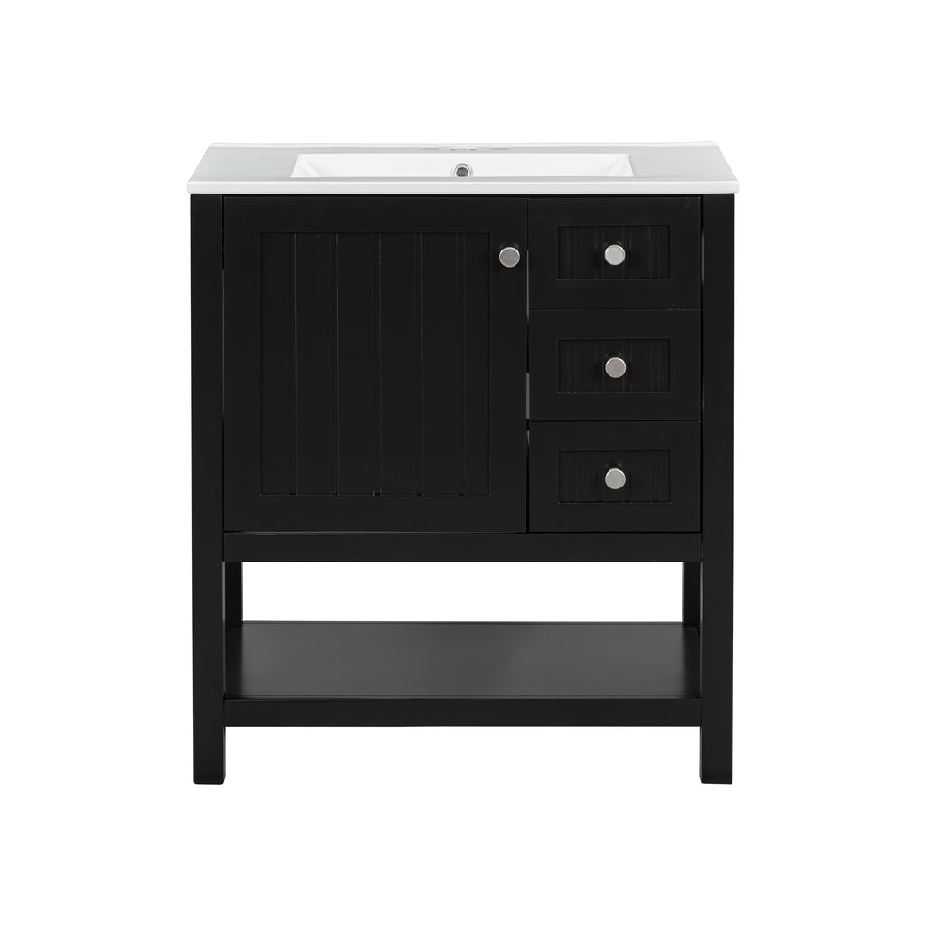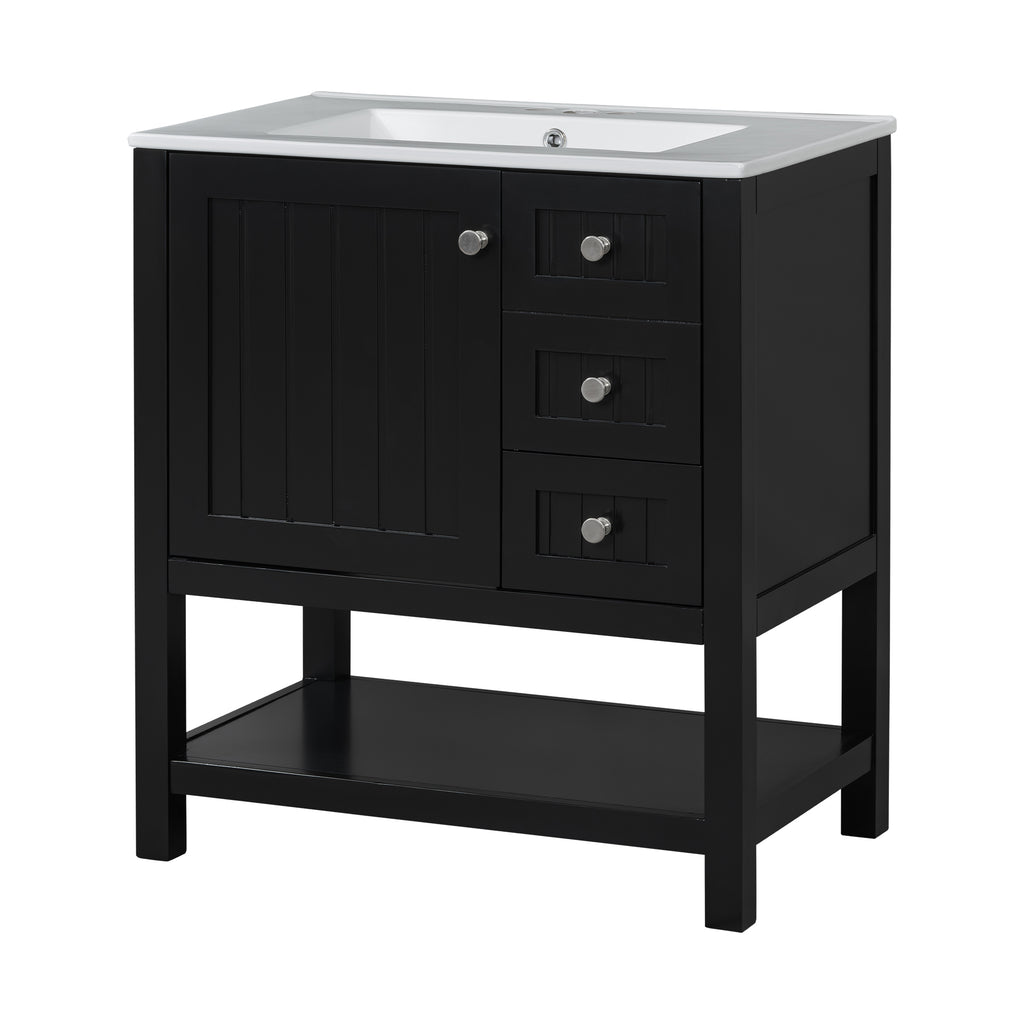 - Assembly Required: The bathroom cabinet and ceramic sink will arrive together in one package, along with all necessary parts and installation instructions (excluding faucet and drain). Assembly of the vanity cabinet is required, but with numbered components and detailed instructions provided, the assembly process is made simple.