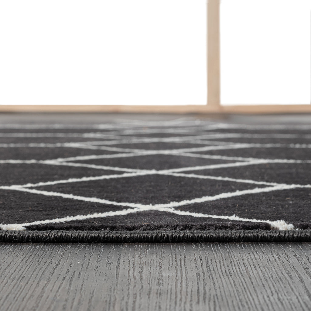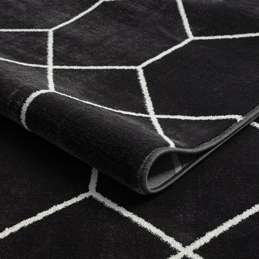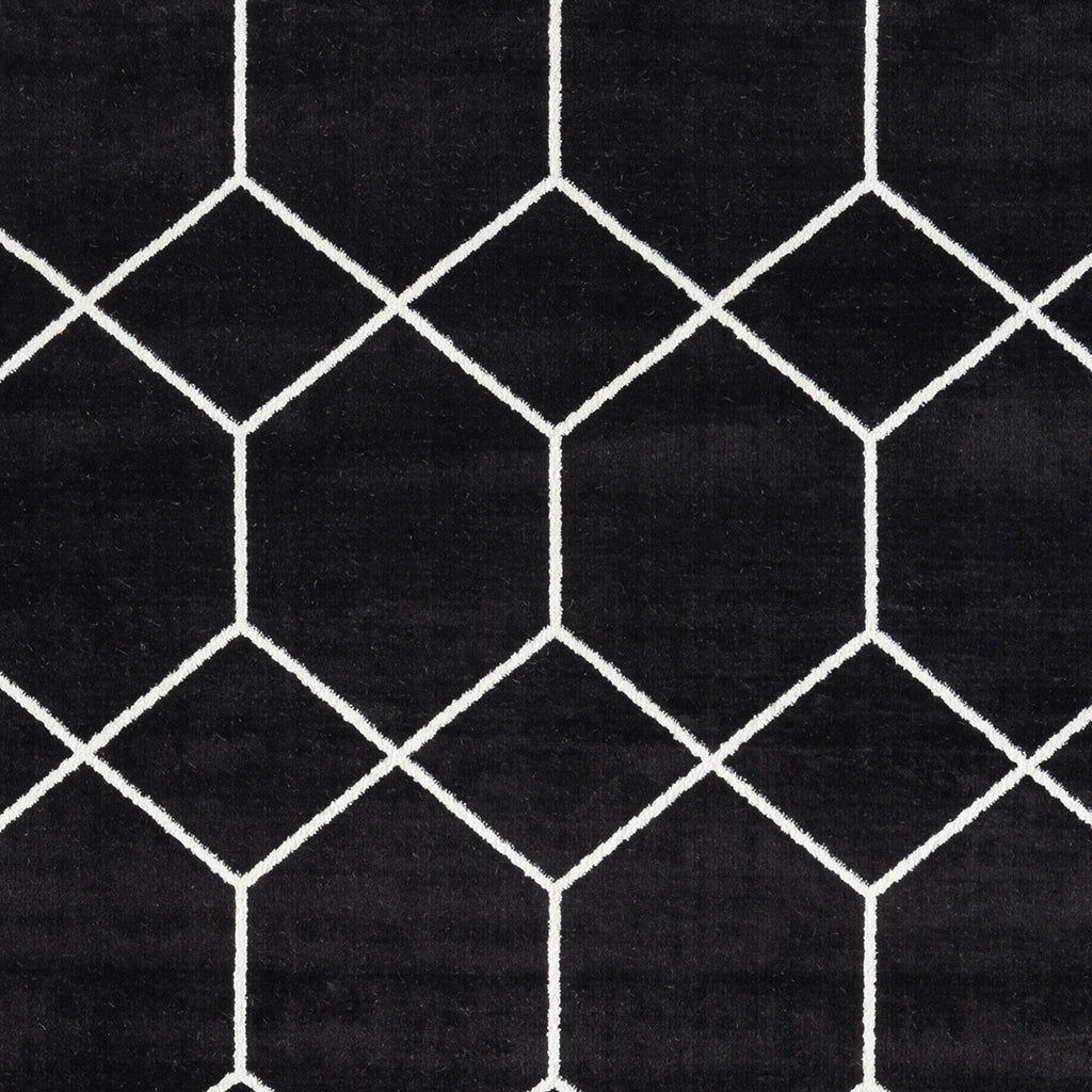 Elevate your home with the modern flair of Madison Park’s Averie Trellis Geometric Black and Cream Woven Area Rug. Made in Turkey, this area rug features a black and cream geometric trellis pattern creating a bold contrasting look. The soft, medium pile makes the woven rug well suited for high traffic areas, while the transparent sprayed latex reverse helps keep the rug from sliding. A rug pad is still highly recommended to keep the rug in place. Stain and fade resistant, this woven area rug is OEKO-TEX certified, meaning it does not contain any harmful substances or chemicals to ensure quality comfort and wellness. Rug is available in multiple sizes, which makes it perfect for your living room, family room, or entryways. To clean, use a vacuum or spot clean.