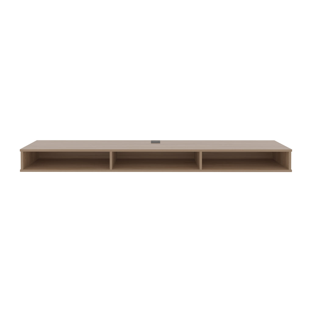 - Three Shelving Spaces: Features three spacious shelves for storing media accessories, books, and decor.