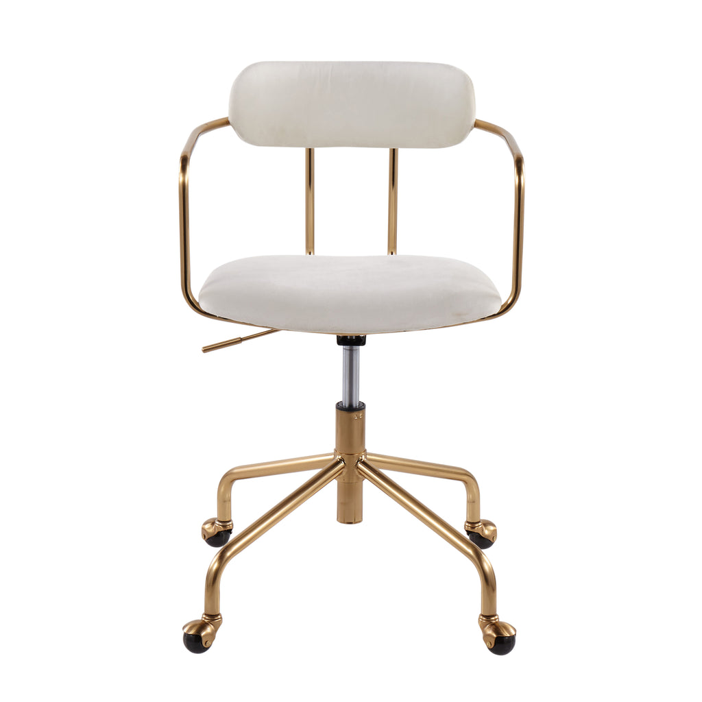 - Dress up your modern home office with the Demi Task Chair by LumiSource. Designed with style in mind, this contemporary task chair features an open back design, luxurious velvet upholstery, and a cushioned seat and backrest. Available in a variety of colors, the elegant Demi Task Chair is sure to give your space the modern look you desire.