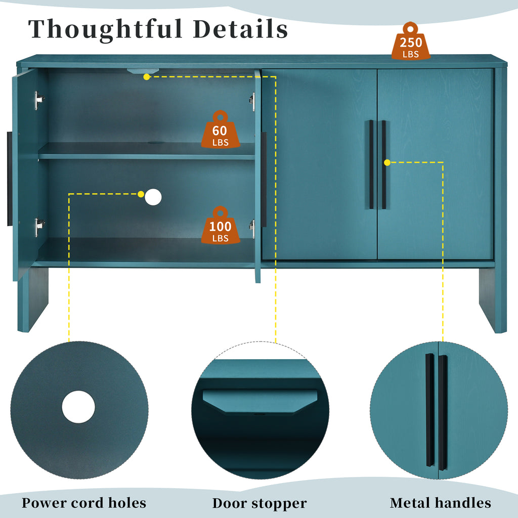 - Vintage Style:This 4-door sideboard buffet cabinet with storage exudes a retro charm. The surface features a vintage look with paint, giving it a classic appeal. The design of the four cabinet doors offers significant storage capacity, making it a perfect sideboard cabinet for your home decor. Suitable for use as a buffet cabinet in the kitchen, a wood sideboard in the dining room, or a storage cabinet in the living room. Available in three colors: antique blue, black, and espresso.
