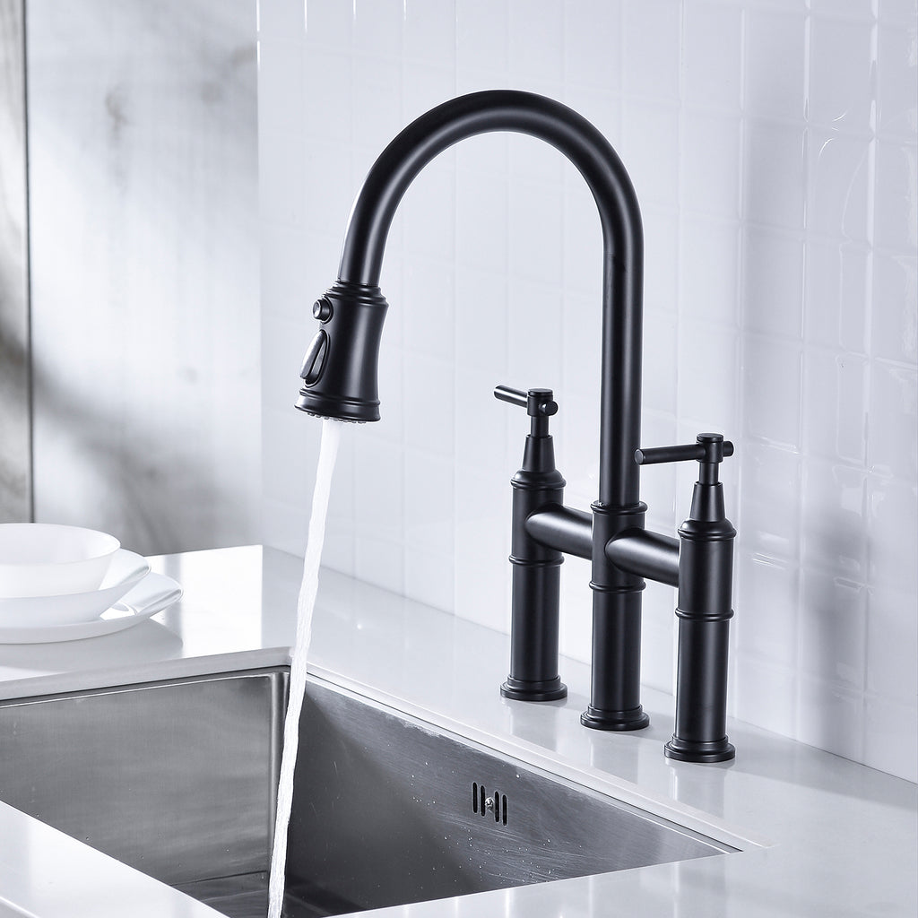 - The 360-degree rotating high-arc nozzle increases the cleaning area and provides ample sink space.