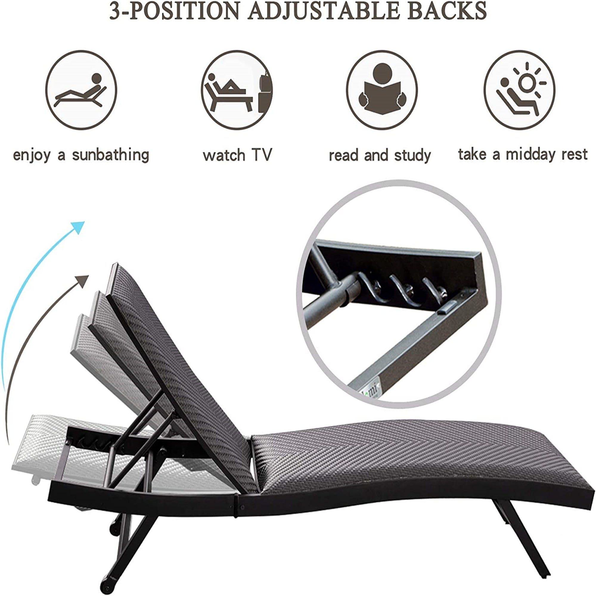 - 4 Adjustable Positions- The pool lounge chair with 4 adjustable positions meet all your different demands for sleeping or lying posture, it can perfectly fit your body.